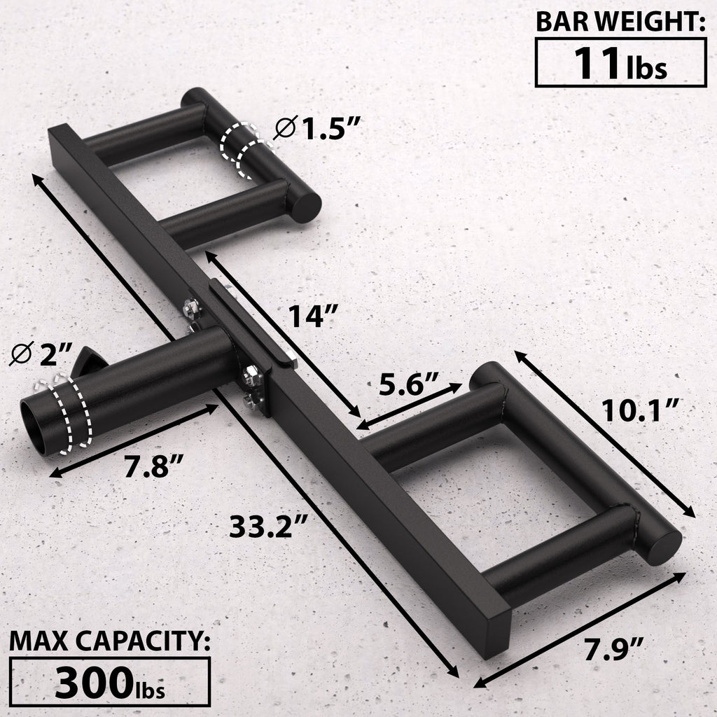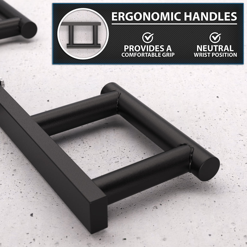 Add this Strongman staple to your workouts for the ultimate upgrade to your overhead barbell and landmine workouts! This Pressing apparatus provides 3 different grips: narrow parallel, wide parallel, and pronated grip. Attach this handle to the end of your standard barbell on your landmine set-up to enjoy its benefits.