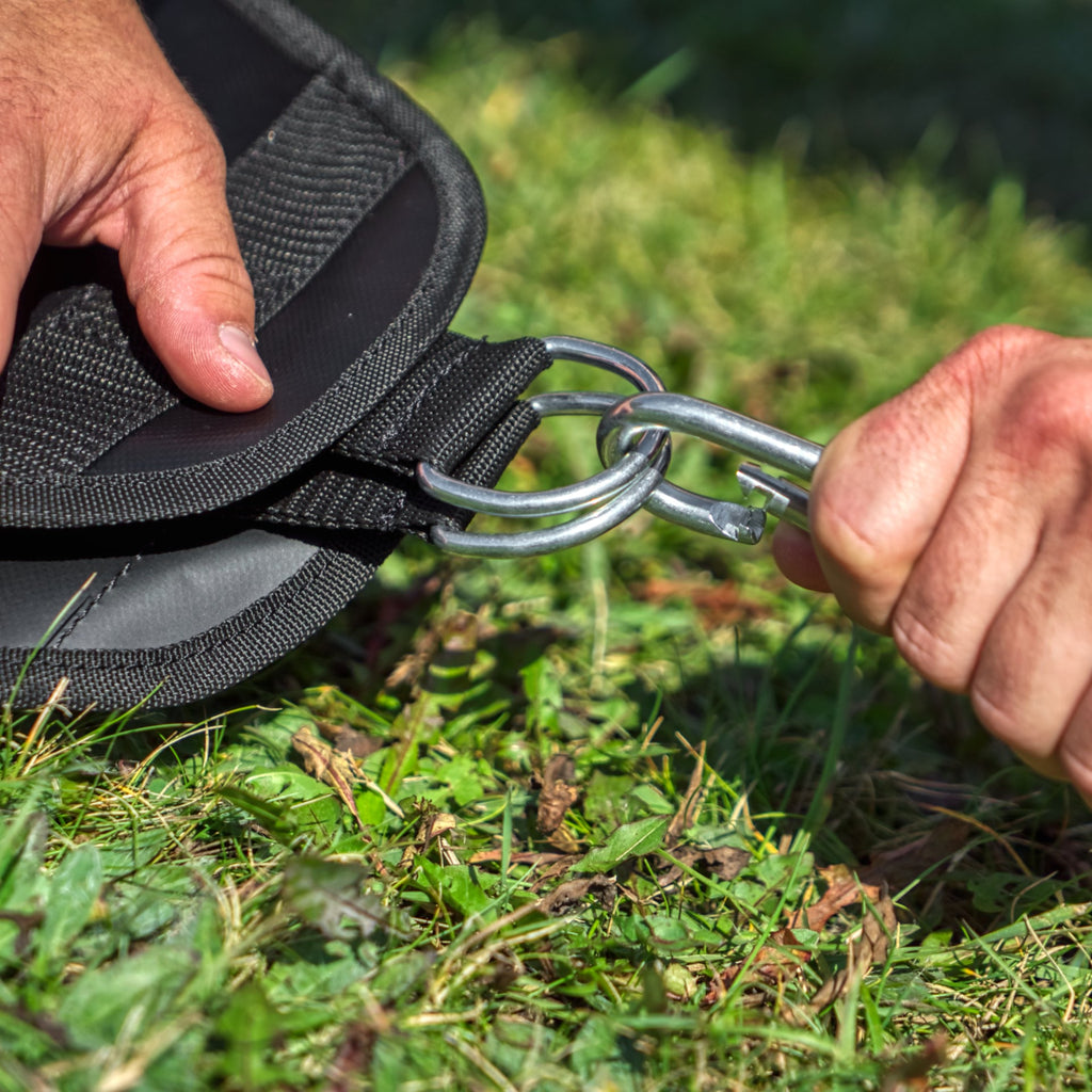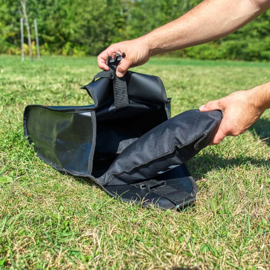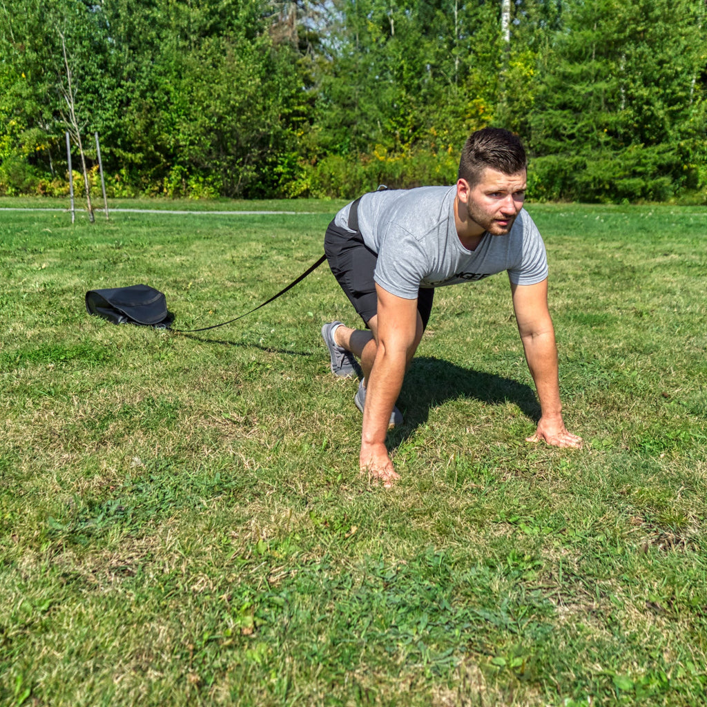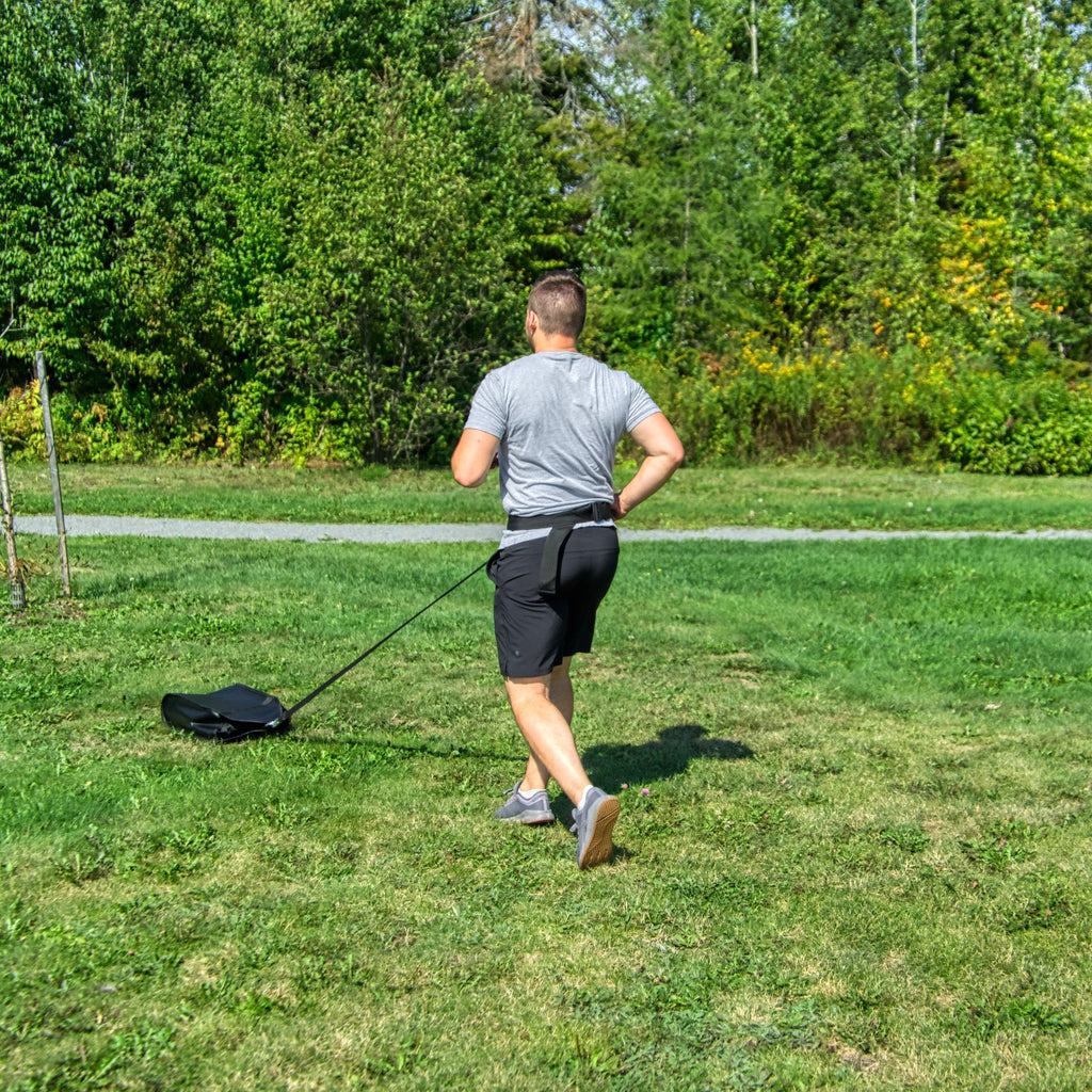 Sprinters, football players, and other athletes that need to accelerate quickly and efficiently will LOVE this Speed Sled. Fill the nylon bags with sand; fill the sled with the bags; set the harness on your waist; and take it for a sprint! Each bag can be filled with 10 lb of sand (sand not included) and each sled comes with 3 bags. Velcro straps in the sled keep the weighted bags in place, and the belt sits comfortable on your waist and attaches to the sled with a ring that is specifically constructed to allow for quick changes in direction. The belt and leash are adjustable for different athletes with various training needs. If your goal is to become faster, this is the gear for you!