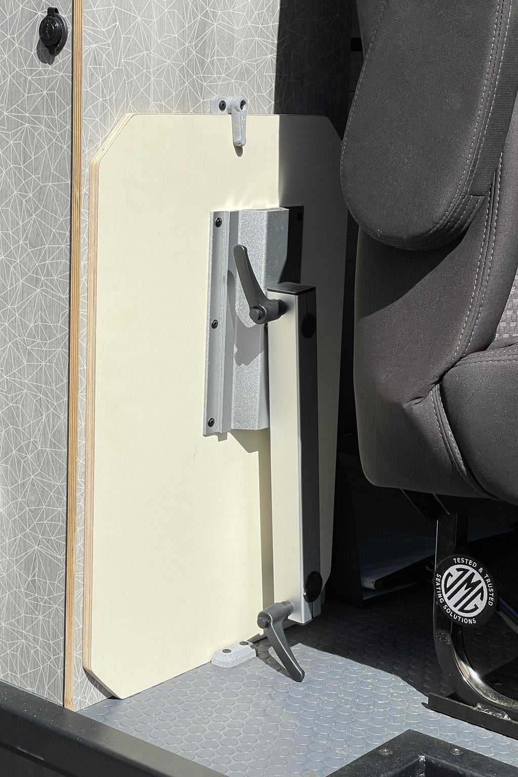 This simple and innovative product is inspired by airplane tray table storage latches.