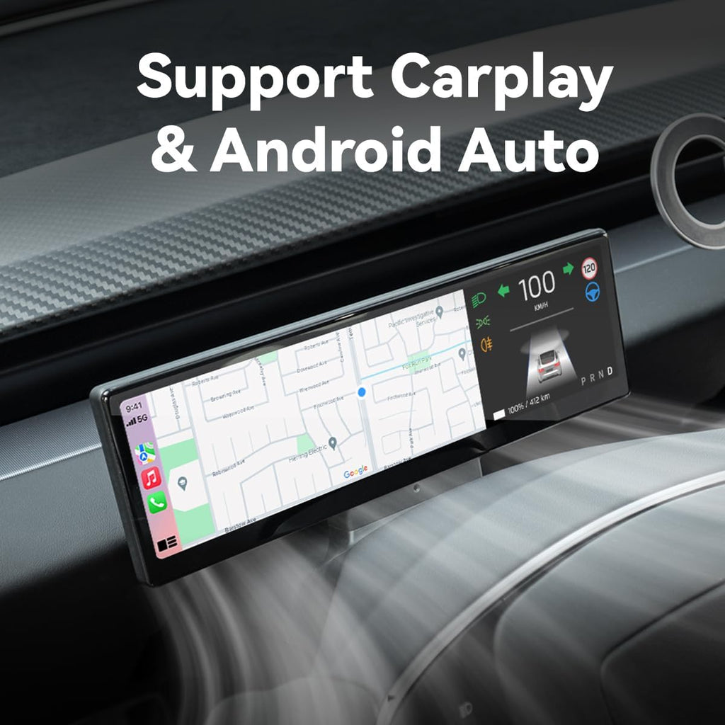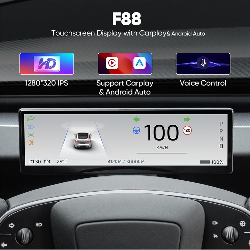 Upgrade your Tesla Model 3 or Model Y with the 8.8-Inch Touch Screen Instrument Cluster Dashboard Display. Designed for both left-hand and right-hand drive vehicles, this advanced display enhances your driving experience with cutting-edge technology and seamless integration. The dashboard features an ultra-thin IPS touch HD screen with a 3mm bezel, supporting split-screen functionality and offering a lag-free experience with wireless connectivity options like CarPlay, CarLife, Android Auto, and Hi Car. The hidden air vent design ensures comfort without compromising style.