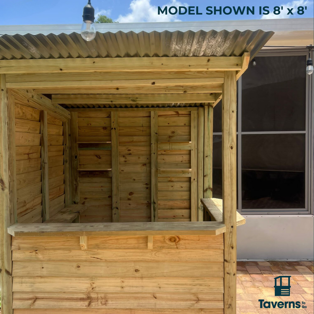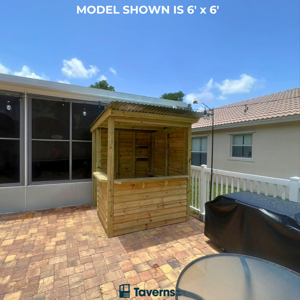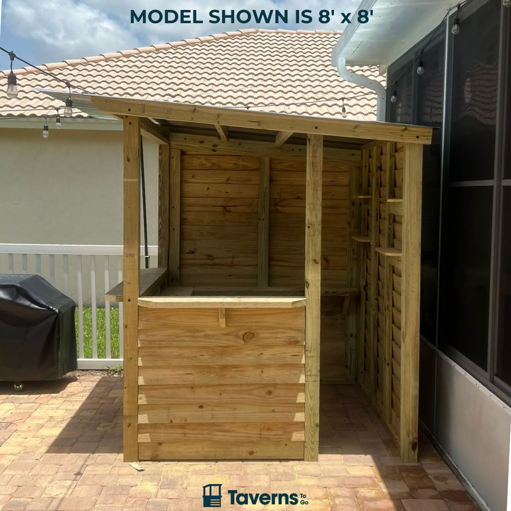 The highest point at the front of the Tavern is approximately 7'-8 and falls down to approximately 7'-2" at the rear. The 10" wide countertop is 42" high off the ground.
