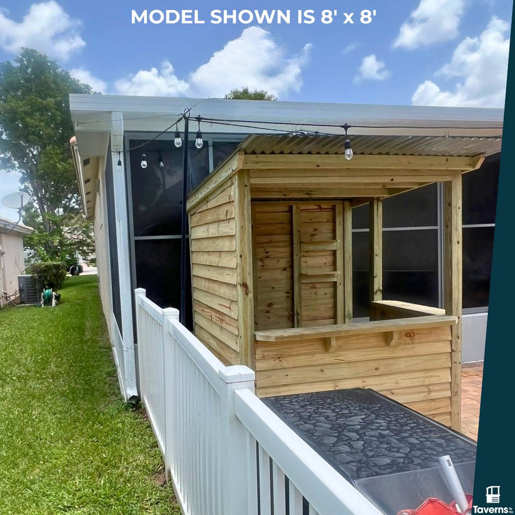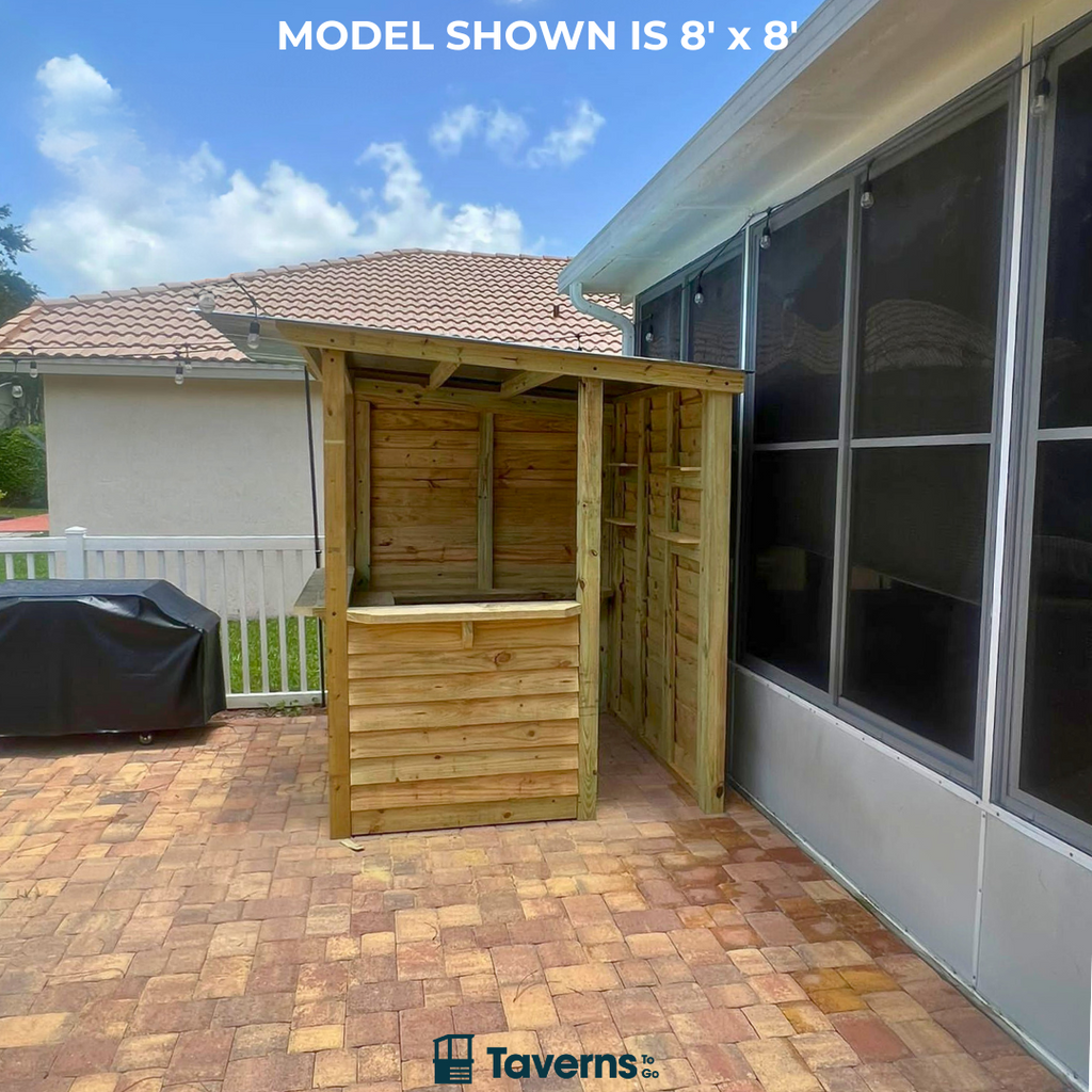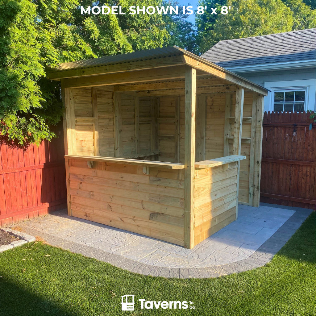 The highest point at the front of the Tavern is approximately 7'-8 and falls down to approximately 7'-2" at the rear. The 10" wide countertop is 42" high off the ground.