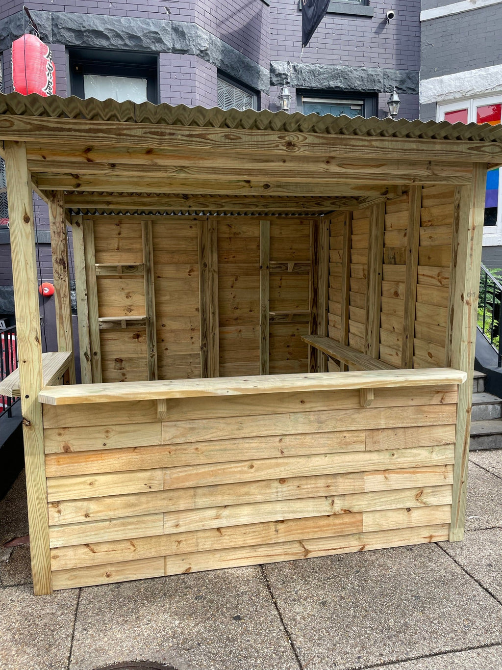 Built with the best of quality, pressure treated lumber enabling outdoor use all year round. The roof structure is a hard wearing galvanized corrugated steel.