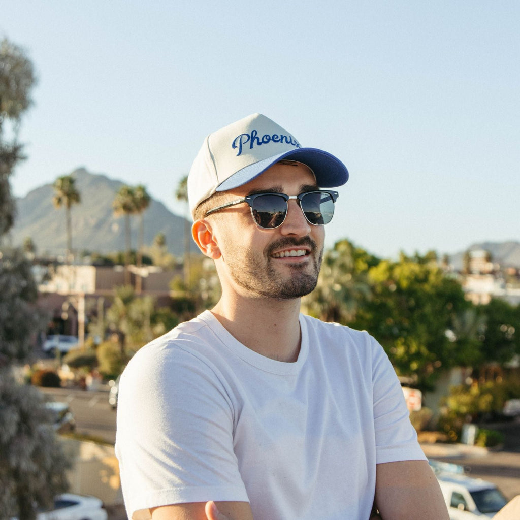 The Phoenix Hat is our salute to the Grand Canyon State's urban heart. Featuring the city's name in flowing script and a small red heart, this hat is a comfortable, stylish way to carry a piece of home wherever you go.