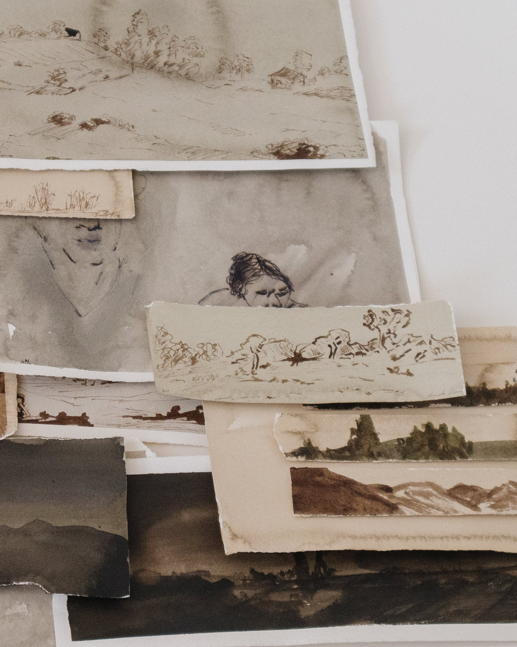 Whether it's the gentle sway of olive trees against the mountains or the contemplative gaze of a solitary figure, the pieces in our Ink Drawings series are crafted with expressive traces, exuding a raw beauty that draws the viewer in and invites them to immerse themselves in the subtle intricacies of each scene.