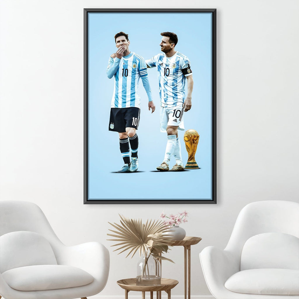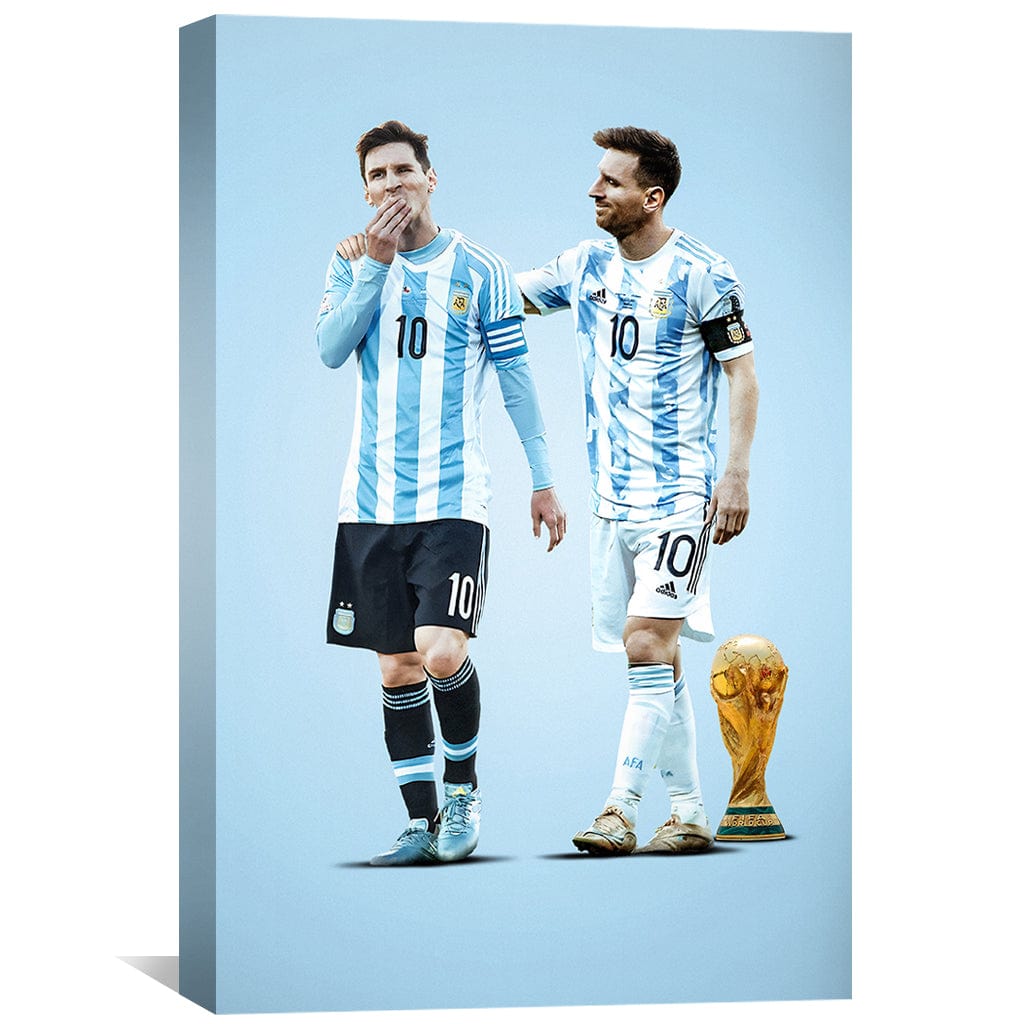 Inspire perseverance and success with this stunning canvas wall art featuring Lionel Messi and the phrase "Time Brings Rewards." The blue and gold colors add a touch of elegance to the scene. This canvas wall art can be hung as is or framed wall art for a more formal look. It is a perfect addition to any home decor or as a gift for a soccer fan. Display your admiration for the champion and his message with this luxurious canvas wall art.