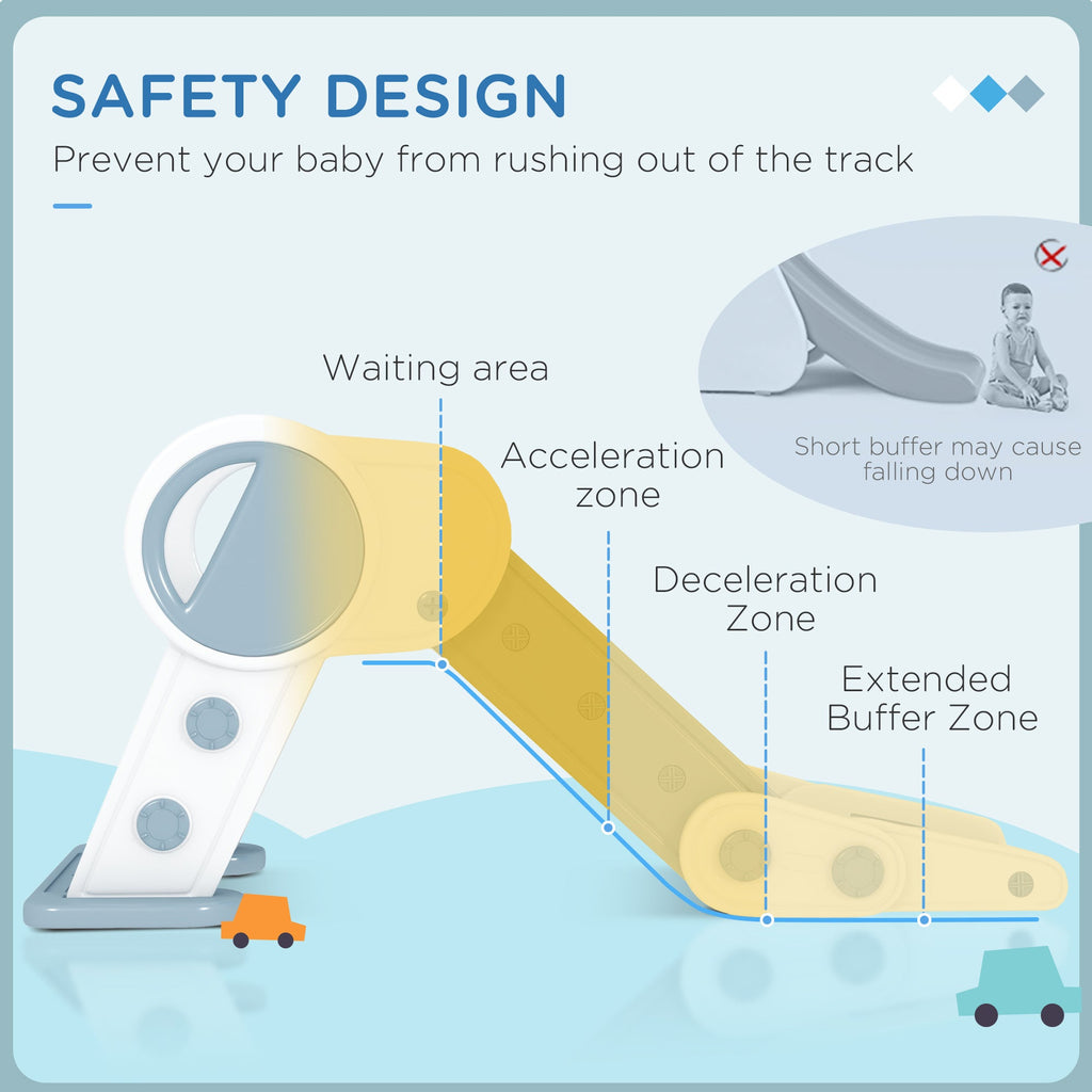- Slide Designed for Kids: This indoor slide features a three-step, non-slip ladder for little ones aged 18-36 months to climb easily. The acceleration, deceleration, and buffer zones allow children to safely fall and land.