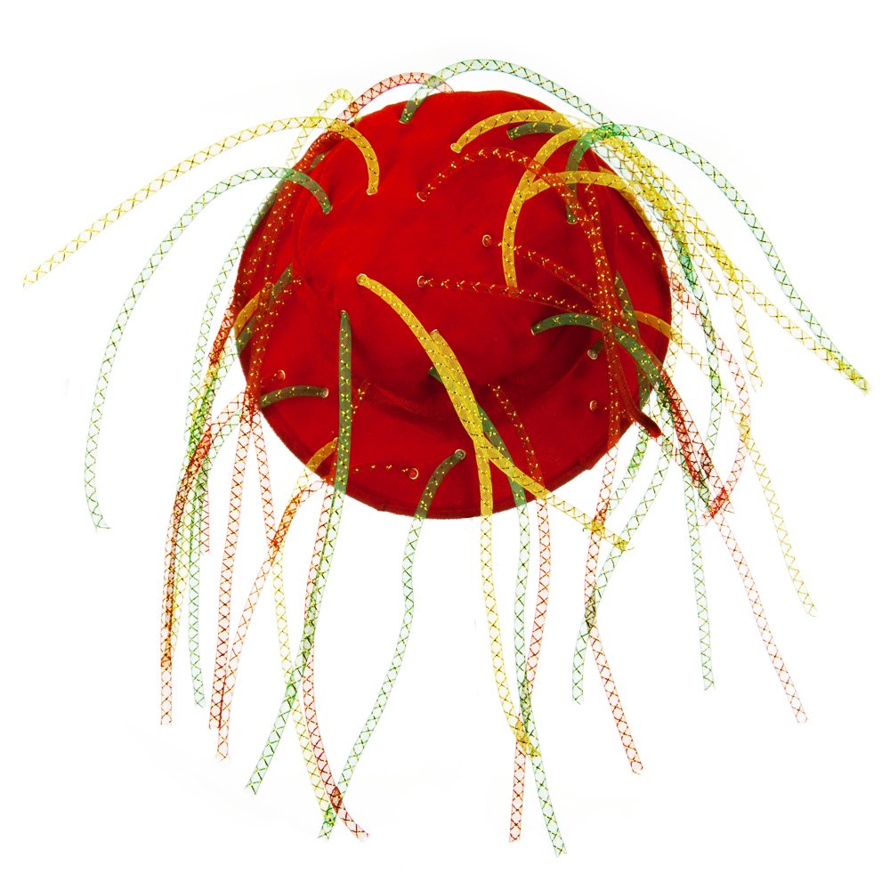 Color Scheme, Red top hat with red, yellow, and green tubes