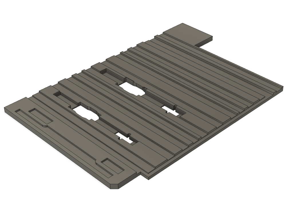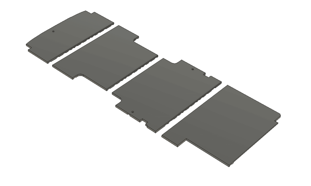 The system includes 3 floor panels that key into the ribs of the van, 3 trim pieces that finish the edging of the floor, and a custom fabricated step that drops in at the entrance of the slider door. The floor is CNC cut using 1-1/2” In-house-built SIPS panel with 1/2” grooves routed out of the insulated foam that keys in to the floor of your van. The height above the top of the ribs is about 1”.