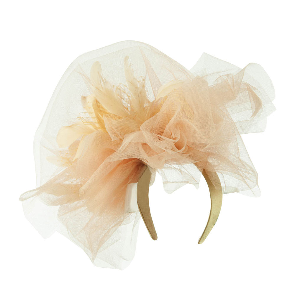 Design Elements, Full-sized tulle fascinator decorated with feathers on one side