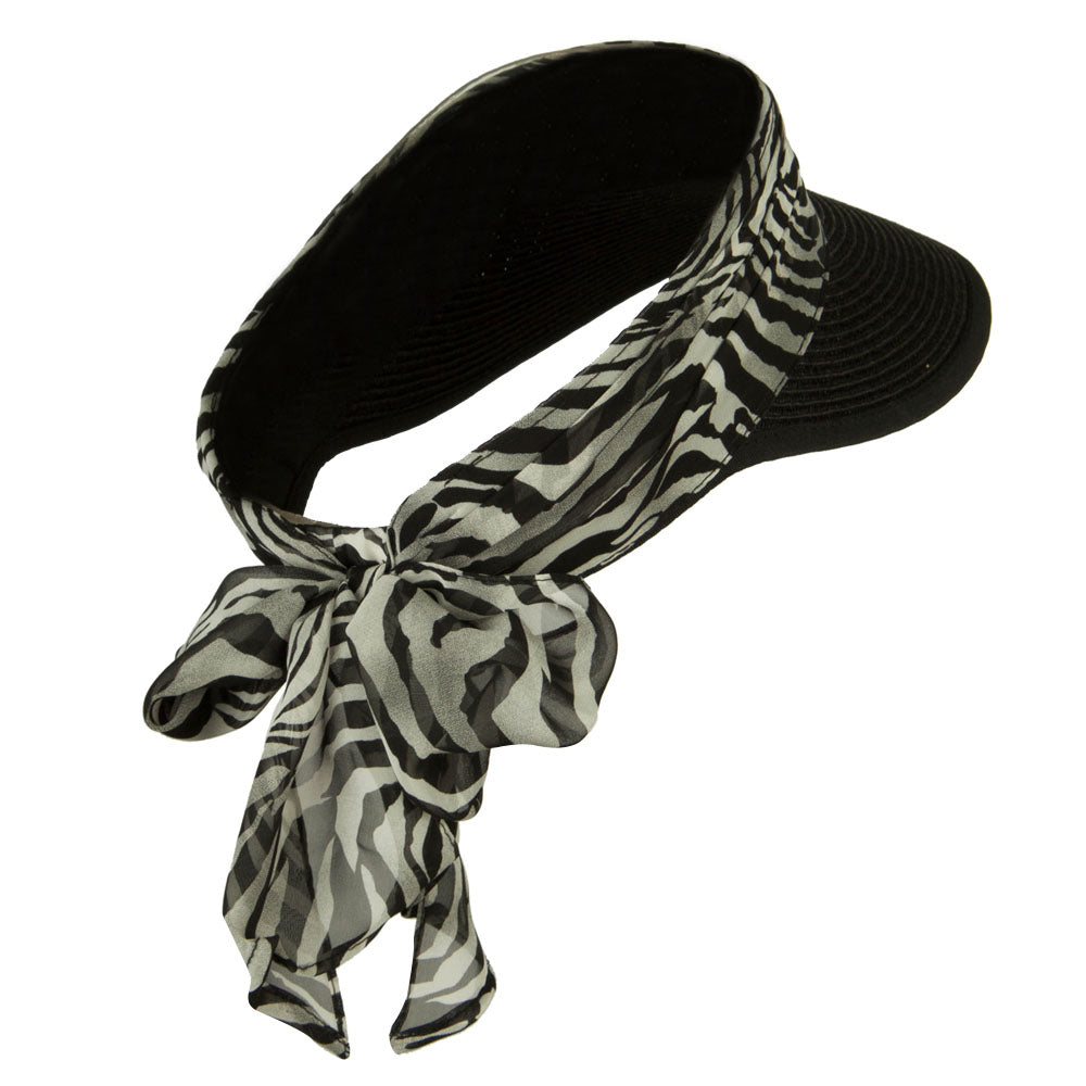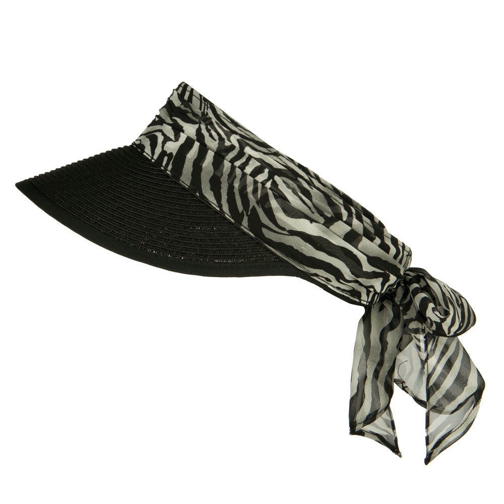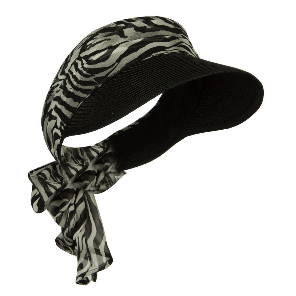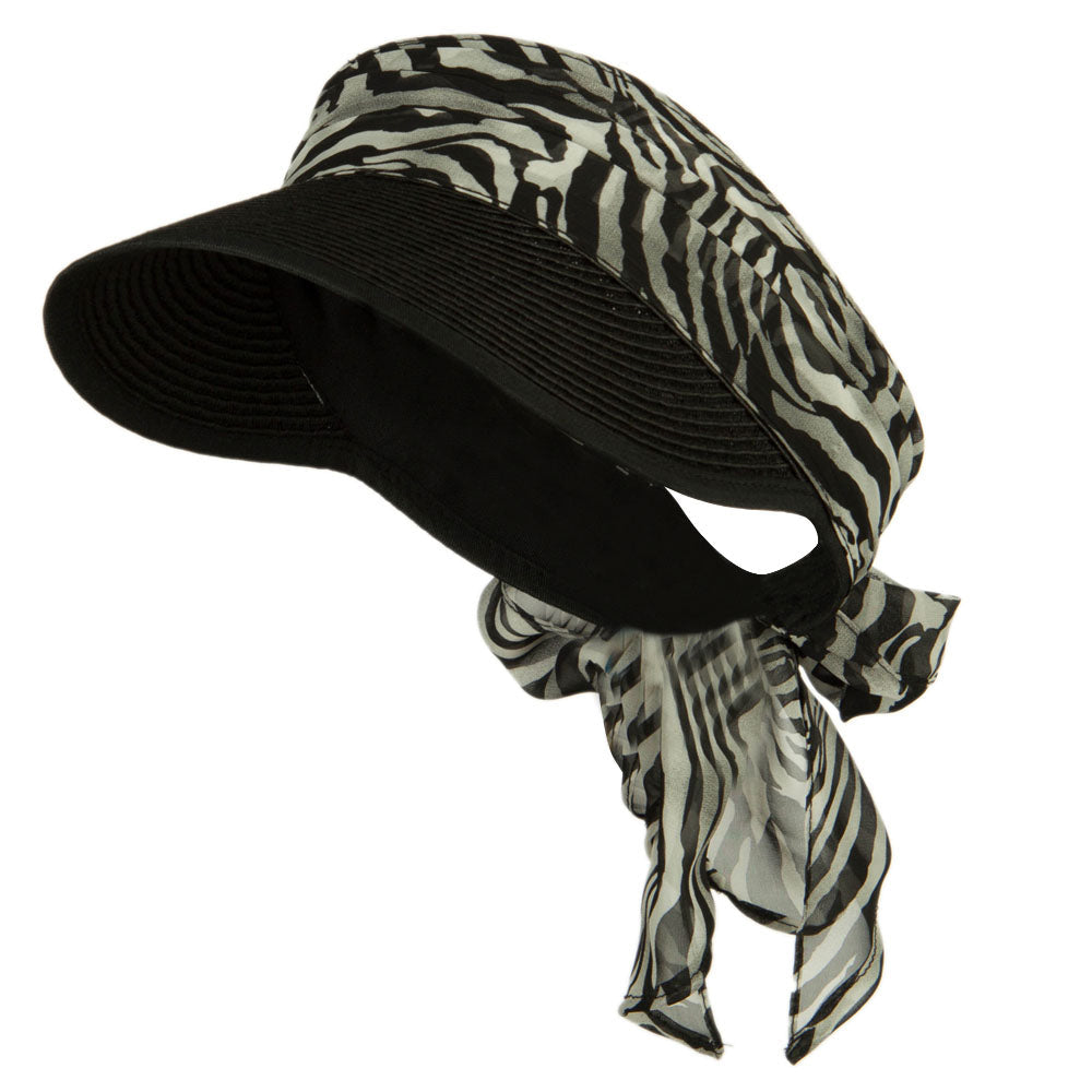 Design, Stylish animal print sun visor for women, accentuated by an animal print scarf