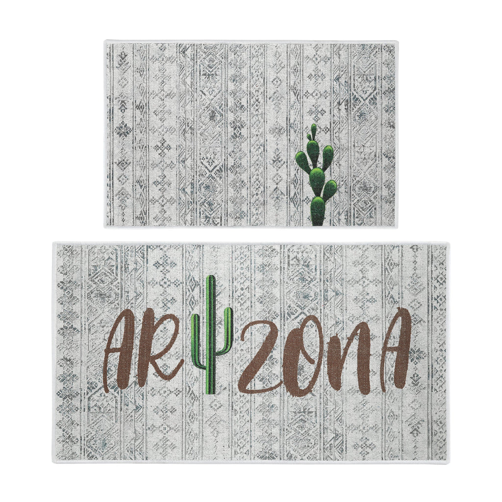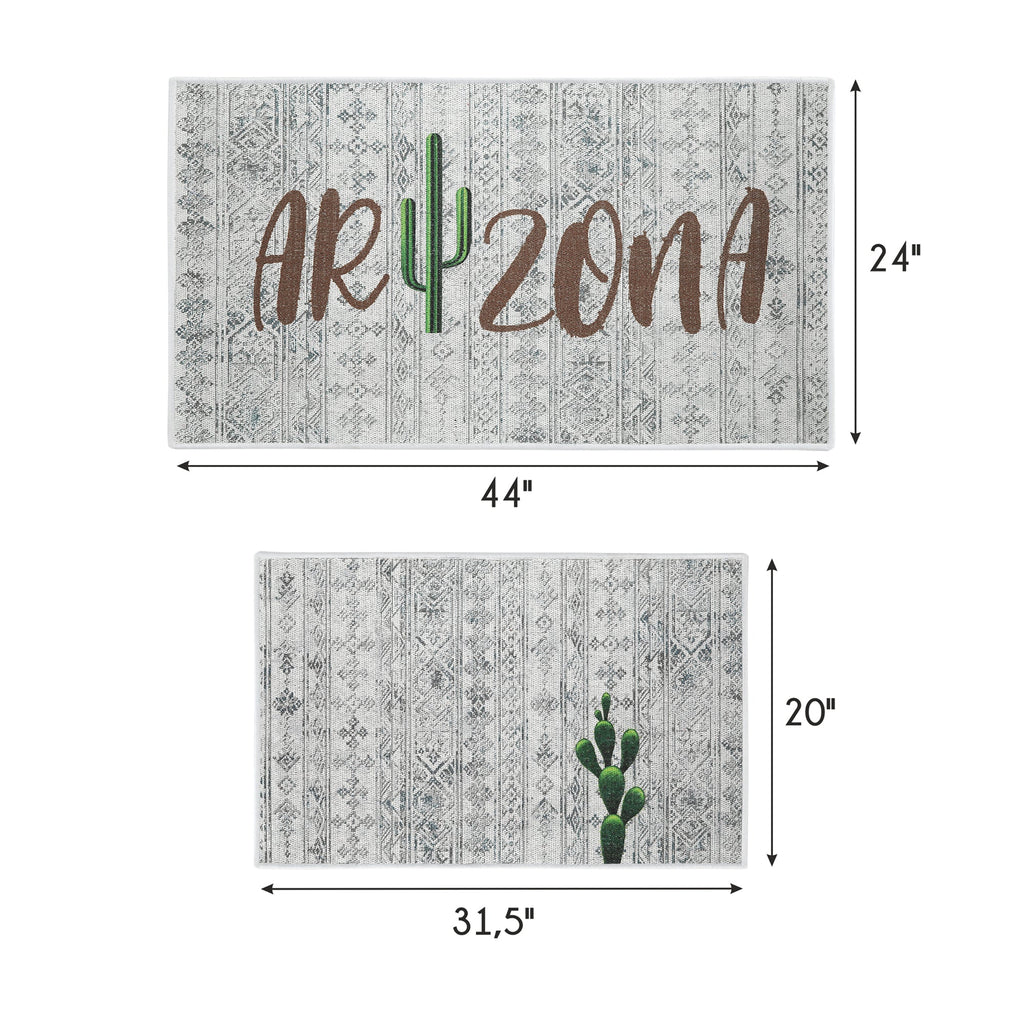 US States Arizona Design Non Skid Washable Kitchen Runner Rugs Set of 2| 44 x 24 and 31.5 x 20 Inches Floor Mats |Gray