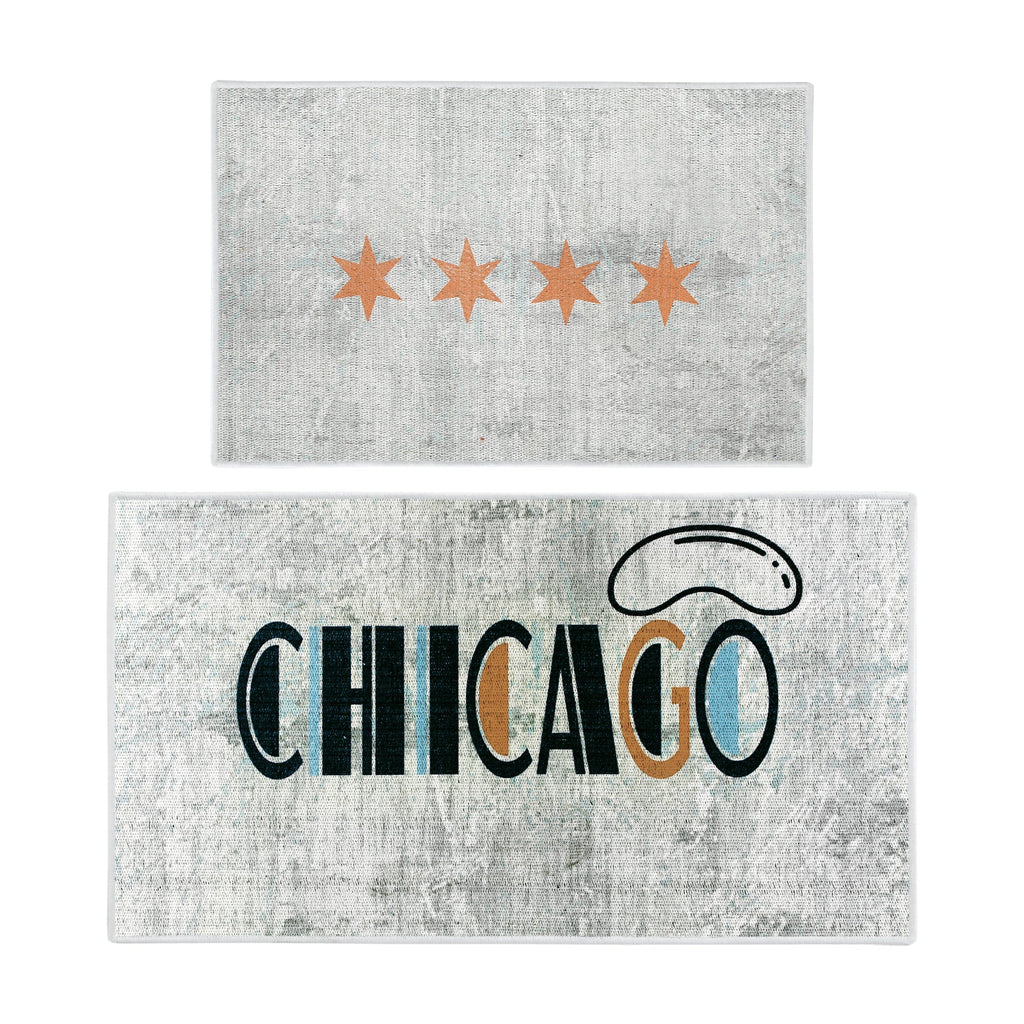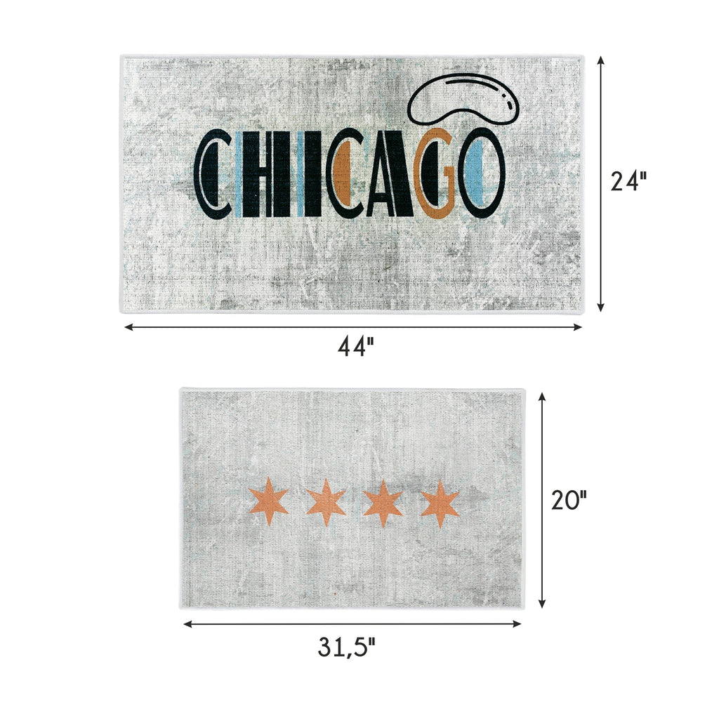 US States Chicago Design Non Skid Washable Kitchen Runner Rugs Set of 2| 44 x 24 and 31.5 x 20 Inches Floor Mats|Ivory