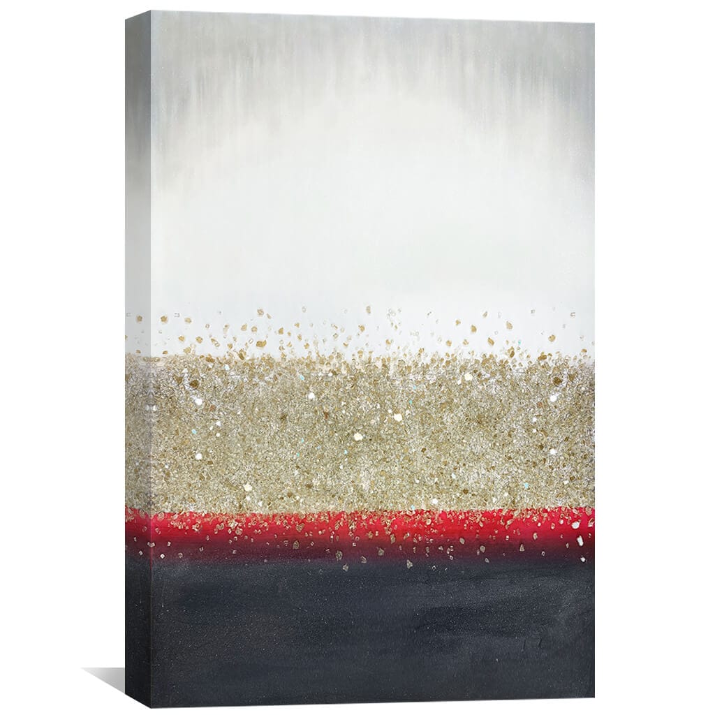 Give any open wall in your home a tasteful touch of glamour with this beautiful print. This canvas showcases an abstract design in white, beige, red, and grey tones.
