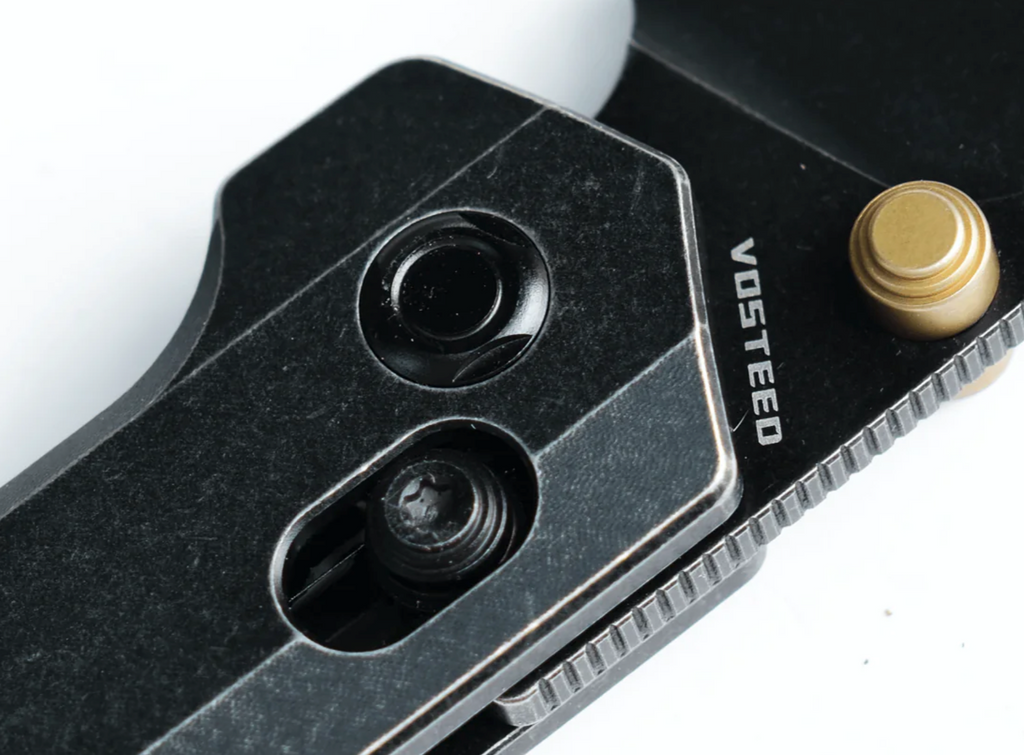 Sleek & Durable Build The Vosteed Dachshund boasts a sleek, modern aesthetic when deployed, and a clean, minimalistic look when closed. Its ergonomically contoured Grade 5 titanium handle features a dedicated finger groove and distinct geometric angles, ensuring a comfortable and secure grip. The ambidextrous pocket clip adds versatile carry options, backed by titanium's renowned durability and structural strength.