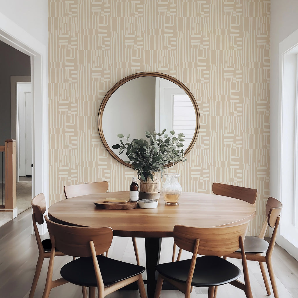 Inspired by the simplicity and imperfection of Scandinavian wabi-sabi, this abstract stripe pattern brings a quiet rhythm to your space. Its freeform, hand-drawn lines echo natural movement - like reeds in the wind or wood grain on a vintage cabinet - offering softness and authenticity in a world of rigid design. The creamy neutral palette adds warmth and versatility, making it a perfect fit for minimalist interiors, creative studios, wellness spaces, or modern hospitality projects.