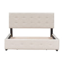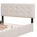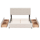 This beautiful Upholstered Platform Bed features button tufted upholstered headboard that adds a contemporary chic look to your bedroom and filled in thick foam to add extra comfort. Sturdy wood frame construction and a wooden slat system to add extra stability and safety. Despite its size and solidity, this piece comes with hardware and instructions included and anyone can assemble it, without a problem. The upholstered platform bed with four drawers can easily be pulled in and out for maximum storage space, perfect for organizing anything from clothes and bed linens to toys and games.