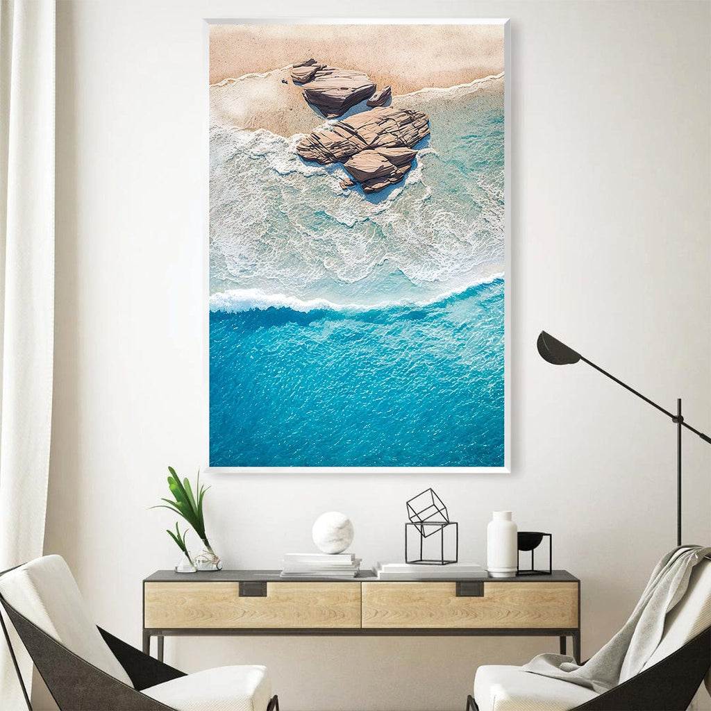 Experience the tranquil beauty of the coast with our captivating "Washed Up Shores" Canvas Wall Art. This stunning photo captures the mesmerizing waves gently caressing the shore, surrounding a majestic rock that stands as a symbol of resilience and strength. The title "Washed Up Shores" perfectly describes the artwork's main subject, showcasing the captivating scene of nature's ebb and flow. The use of soothing brown, calming blue, and pure white colors adds depth and serenity to the piece, transporting you to a peaceful seaside retreat. Elevate your decor with this remarkable canvas wall art, available in framed options for a touch of elegance.