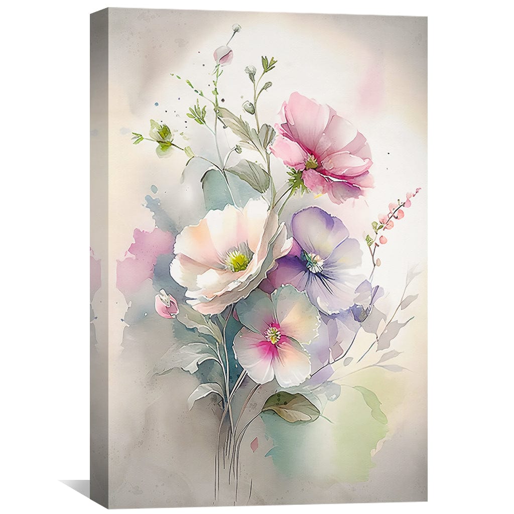 Bring beauty and elegance to your home with our exquisite Watercolor Arrangement of Flowers canvas wall art. This stunning piece features an intricate watercolor painting of a bouquet of white and pink flowers, set against a subtle background that allows the flowers to take center stage. The use of soft watercolor brushstrokes and delicate details creates a serene and tranquil atmosphere. Made with high-quality canvas and expertly framed, this wall art is the perfect addition to any room in your home. Bring the beauty of a fresh bouquet of flowers to your home decor with our Watercolor Arrangement of Flowers canvas wall art.