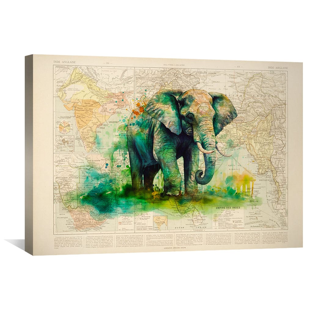 Embrace the grace and strength of nature with our captivating canvas wall art titled "Watercolor Elephant." This stunning watercolor painting depicts a majestic elephant, capturing its majestic presence and gentle demeanor. The background effect of a map adds a touch of wanderlust and adventure to the artwork, creating a sense of exploration and discovery. The color palette of grey, green, and cream beautifully complements the natural essence of the elephant, showcasing its harmonious connection to its environment. Whether displayed as wall art, canvas art, or framed art, "Watercolor Elephant" will add an element of elegance and tranquility to your space.