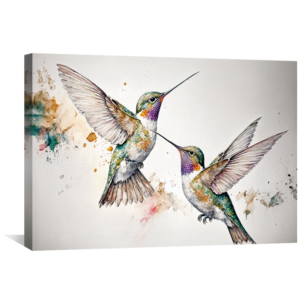 Add a touch of nature to your home decor with our stunning Watercolor Hummingbirds canvas wall art. This beautiful painting features vibrant brown, and green hues that bring the hummingbirds to life. The watercolor style adds a delicate and graceful touch to this piece of art, making it a perfect addition to any room. Whether you're looking for canvas wall art, framed wall art, or any other type of wall art, this piece will not disappoint. Its premium quality canvas print is stretched and framed to perfection, ensuring that it will be a focal point in your space for years to come.