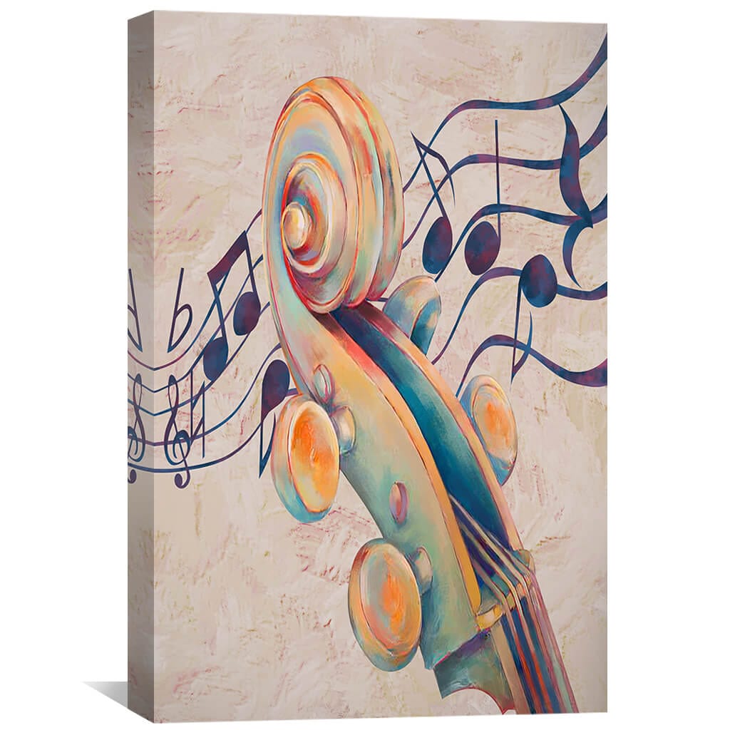 Give any open wall in your home a tasteful touch of glamour with this beautiful print. This canvas showcases a design of a chello and music notes.