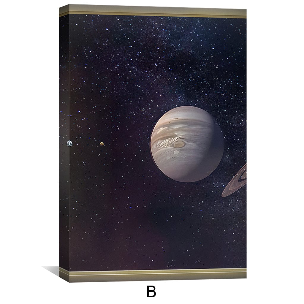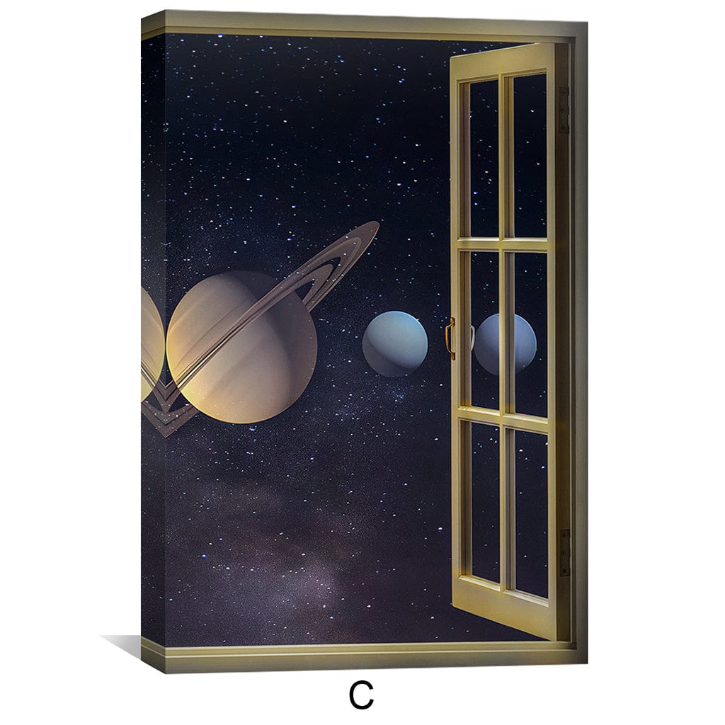 Embark on a cosmic journey with our captivating canvas wall art, "Window to Orbit." This mesmerizing piece transports you beyond the confines of Earth, allowing you to peer into the vastness of space through an open window. Behold the majestic planets and their orbits, as the title "Window to Orbit" suggests. The use of grey, yellow, and black colors creates a striking contrast, evoking a sense of mystery and awe. Whether you choose it as canvas wall art or framed wall art, "Window to Orbit" adds a touch of celestial wonder to any space.
