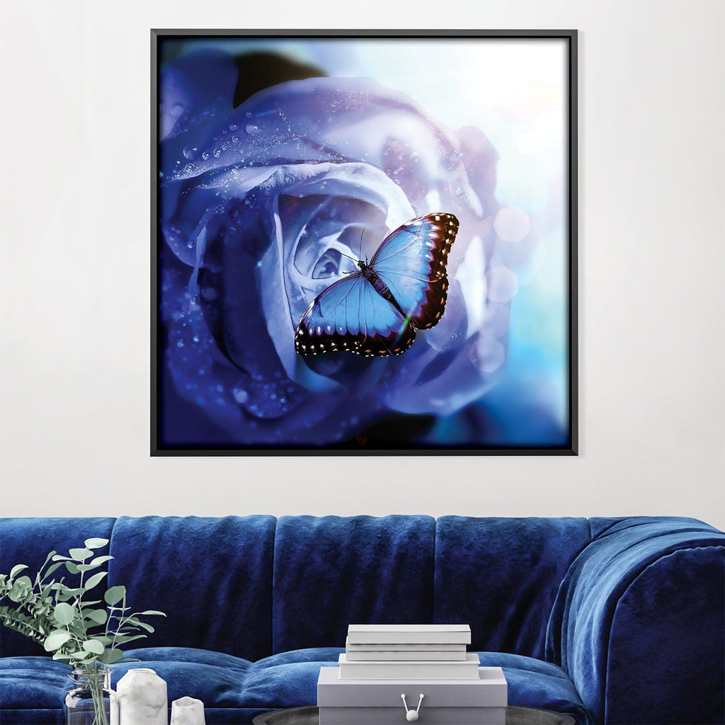 Bring the beauty of nature into your home with our "Wings of the Flower" canvas wall art. This stunning piece features a blue butterfly perched delicately on a blue flower, rendered in a calming palette of blue and white. Printed on high-quality canvas, this piece will make a statement in any room. Whether you're looking for a striking addition to your bedroom, living room, or office, our canvas wall art is perfect. Available in various sizes and framing options, this piece is ready to be hung and admired.