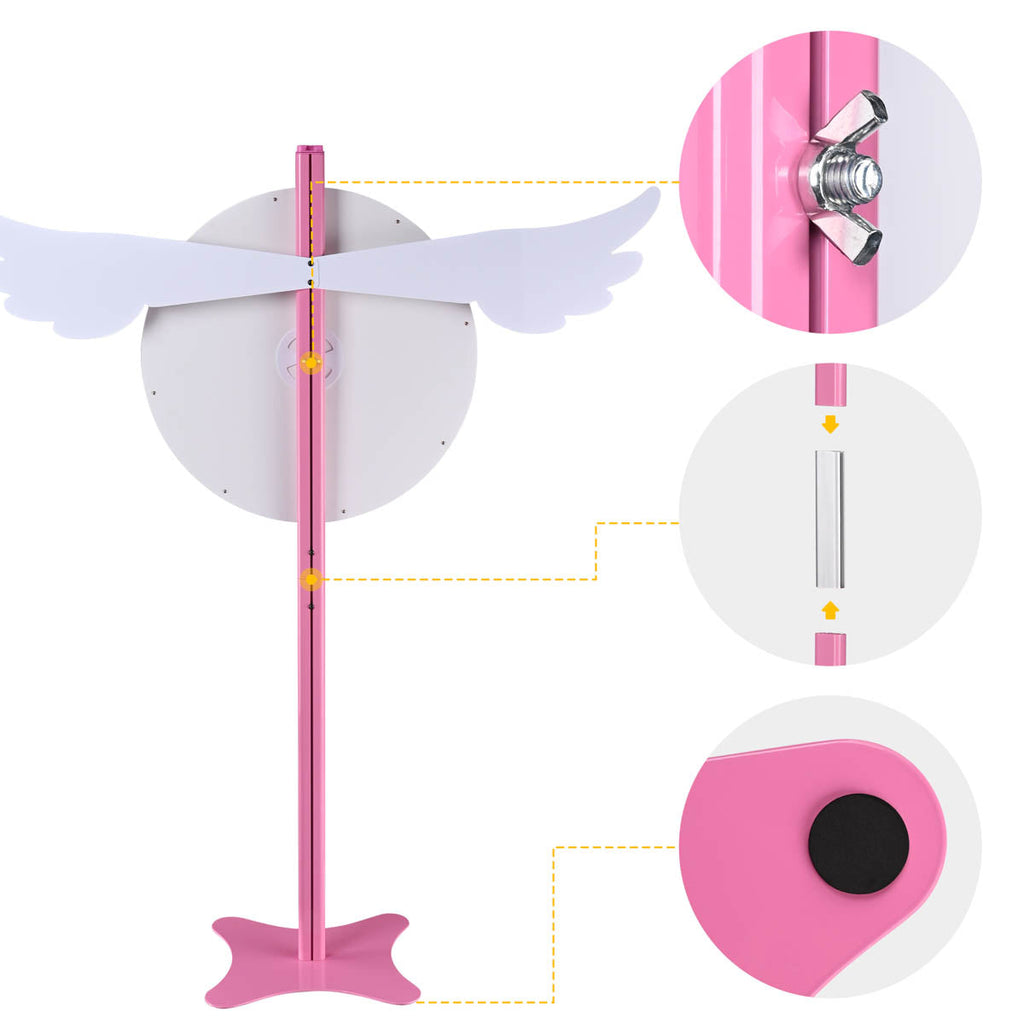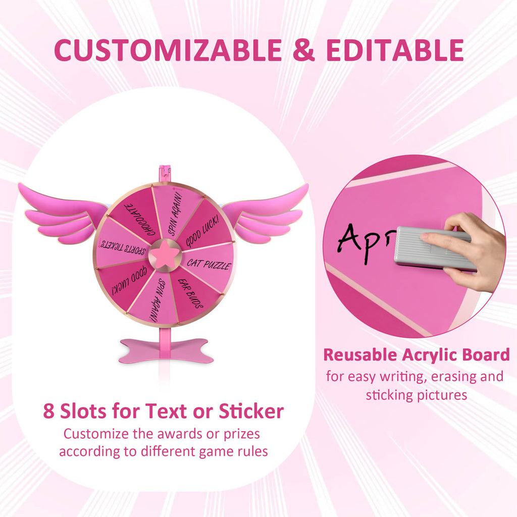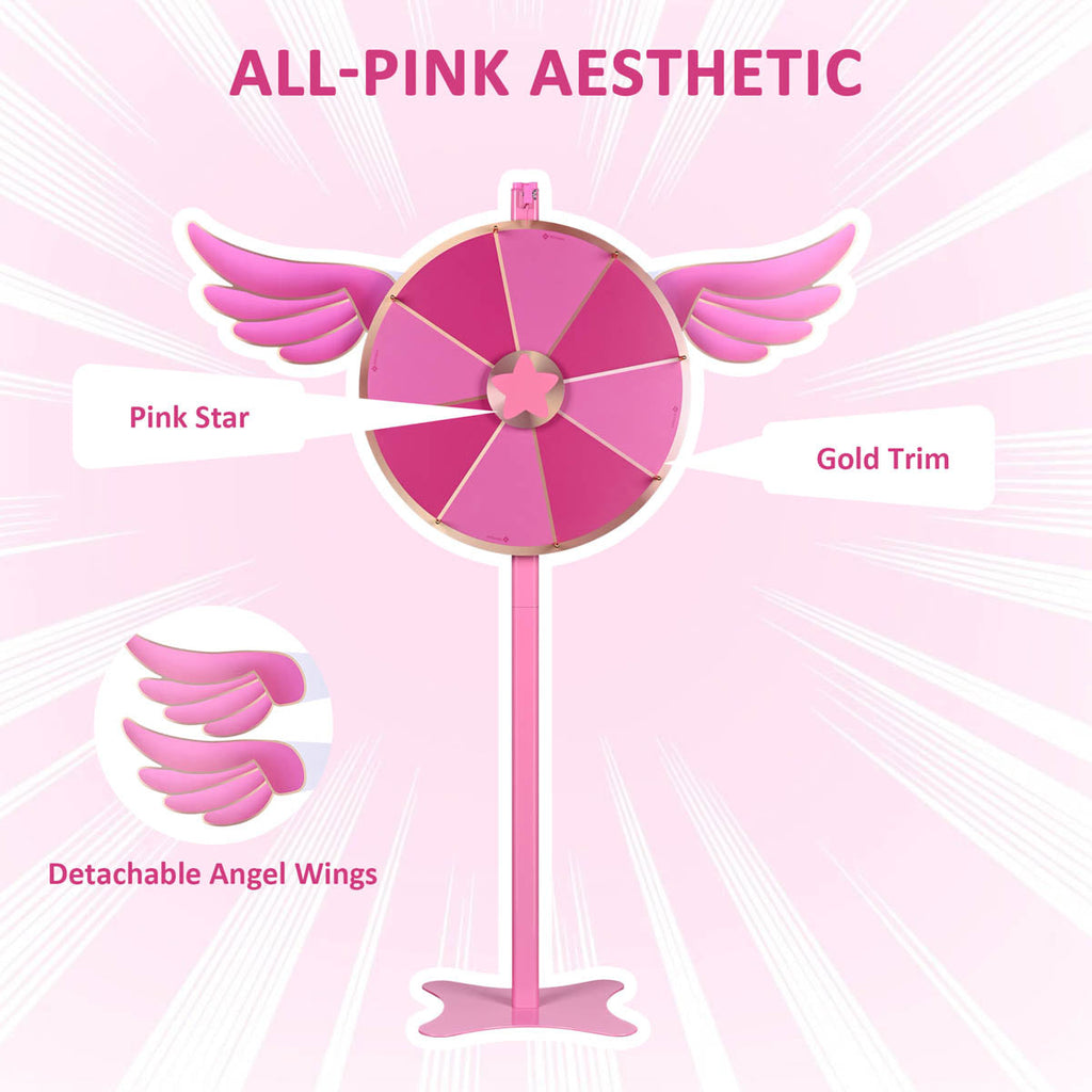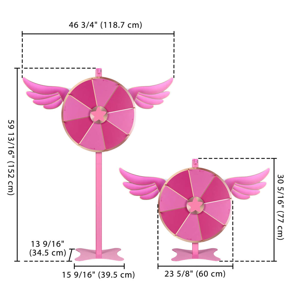 WinSpin's 24" Dual Use Prize Wheel adds a pink touch to any gathering! With options for tabletop or floor stand use, its unique petal-shaped base offers stability. Customize your prizes with 8 slots and enhance the excitement at parties, carnivals, or shopping malls.