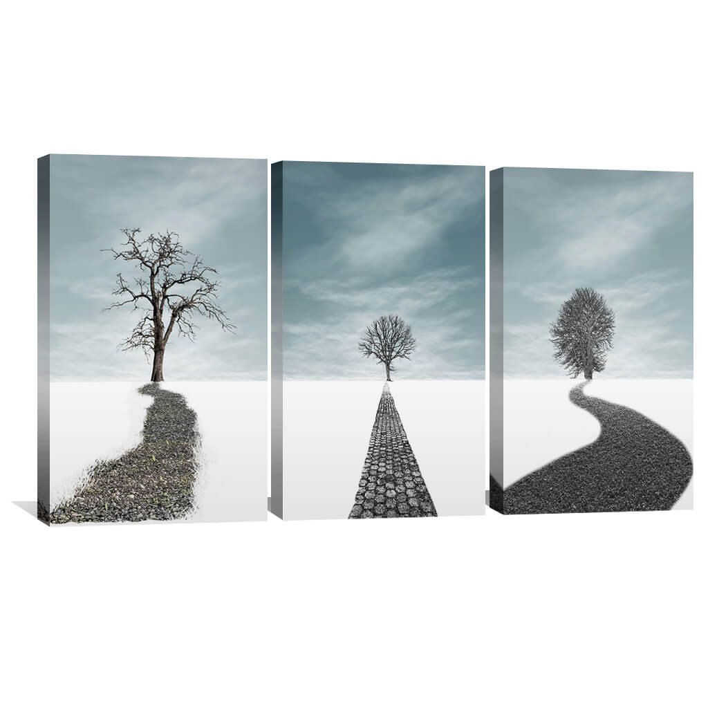 Give any open wall in your home a tasteful touch of glamour with this painting print. This canvas showcases multiple beautiful, snowy paths towards a single tree.