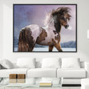 Give any open wall in your home a tasteful touch of glamour with this painting print. This canvas showcases a design of a horse standing in a snowy field on a winters night. Artist: Laurie Prindle