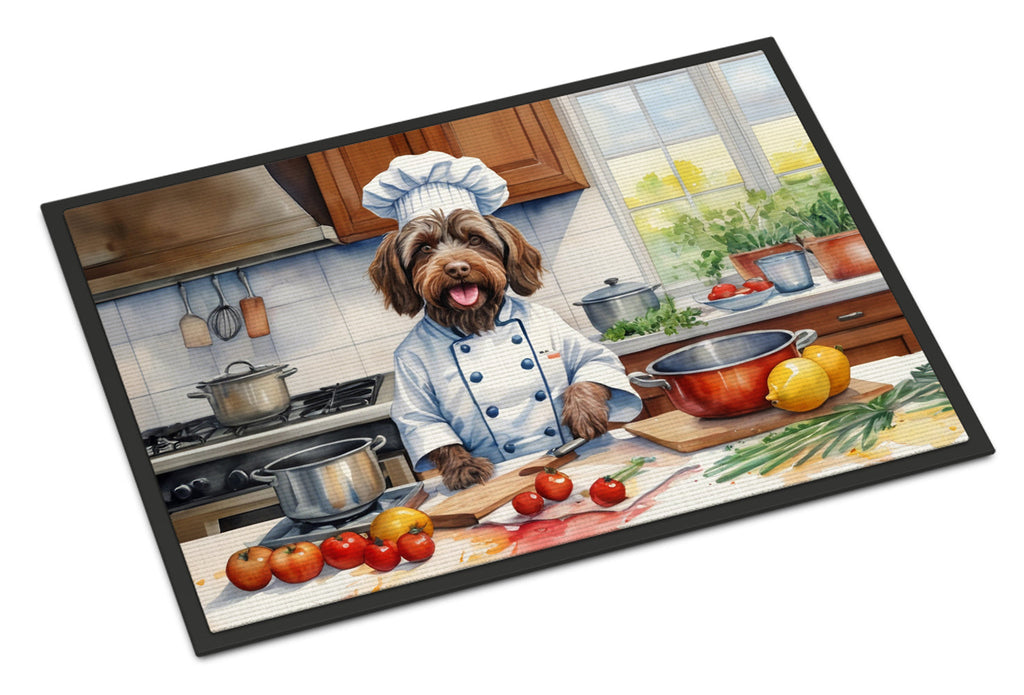 Decorate your space with our Wirehaired Pointing Griffon artwork on a Doormat. Welcome your guests in style with our Artwork Door Mat, designed to withstand almost any weather condition. This mat, measuring approximately 18 by 27 inches, is held together by durable black binding tape. Its top layer, composed of polyester felt, is dyed with the eye-catching image you see on the mat. A few layers below provide the mat with stability, while its rubber bottom is stamped to help prevent slipping and ensures safety. Our mat works wonderfully as both an indoor or outdoor door mat. For cleaning, simply hose it off with water or use a power washer - no need for any cleaner that produces suds. Avoid scrubbing with a brush, instead, opt for the vacuum on floor setting. Designed manufactured and printed in the USA, this mat is a perfect addition to your porch, outdoor kitchen, entryway, or any indoor space. Its unique design makes it a charming decorative rug that greets your guests and adds a stylish touch to your home decor.