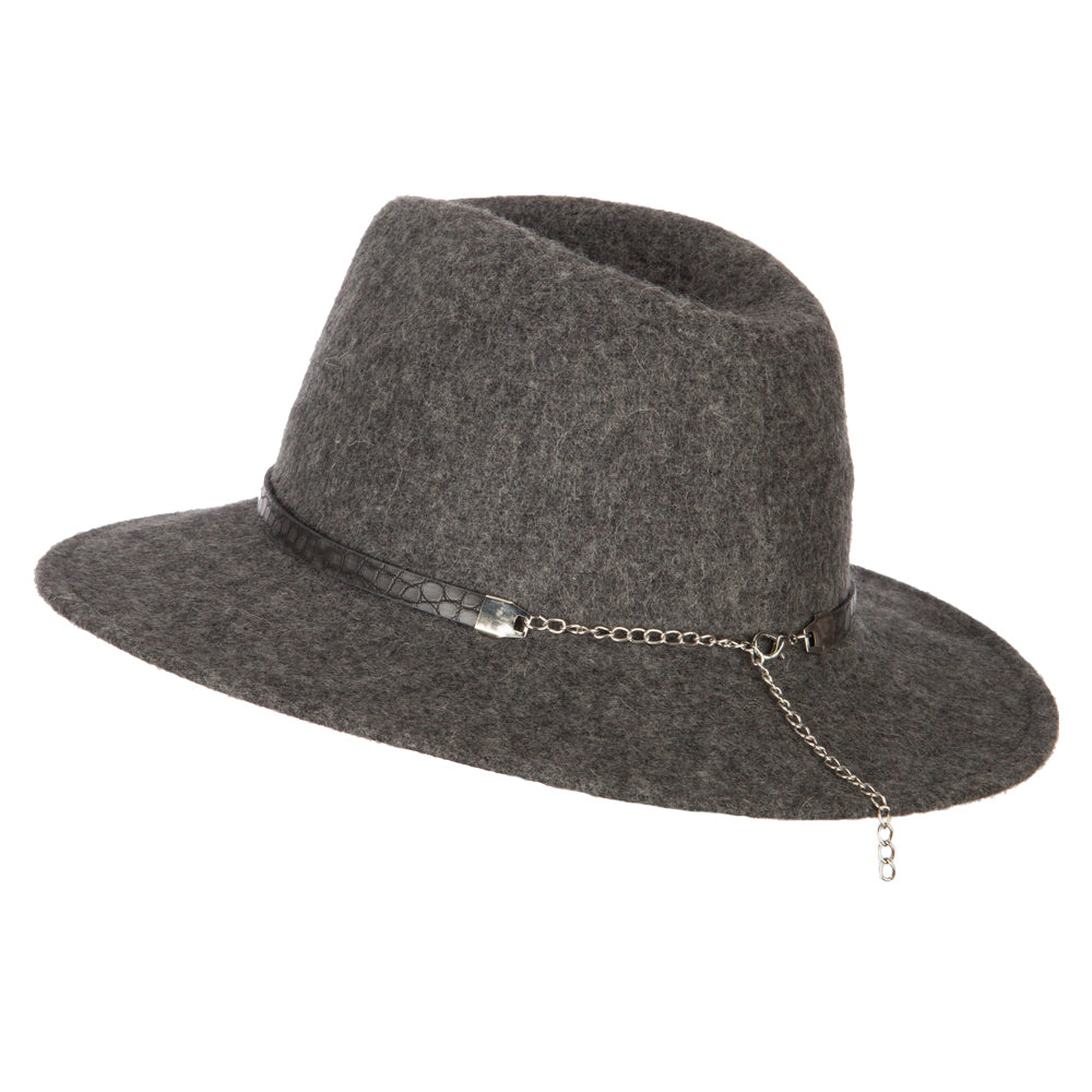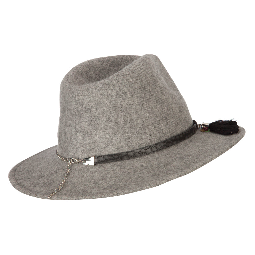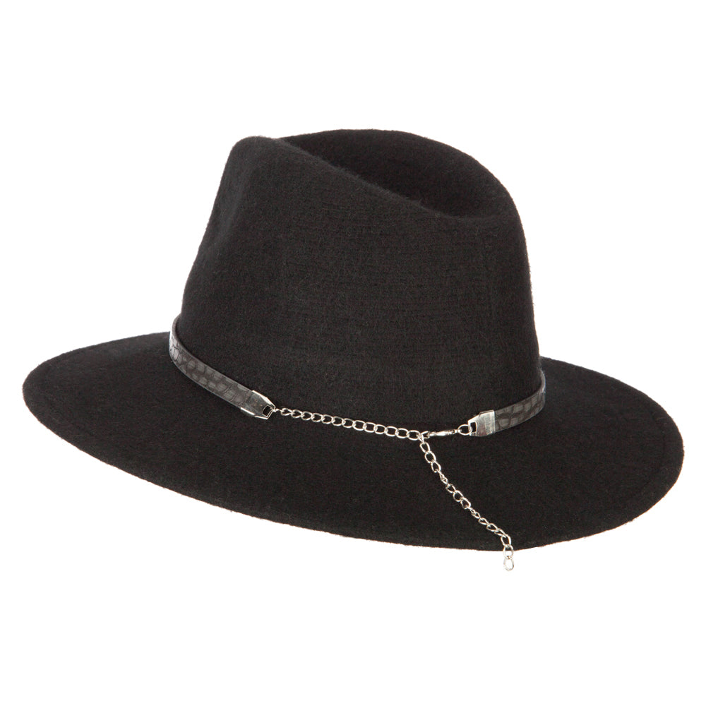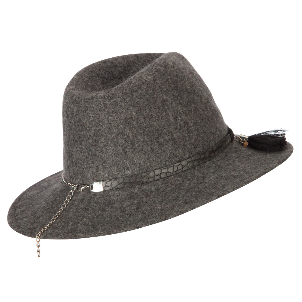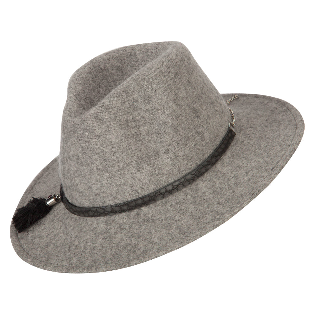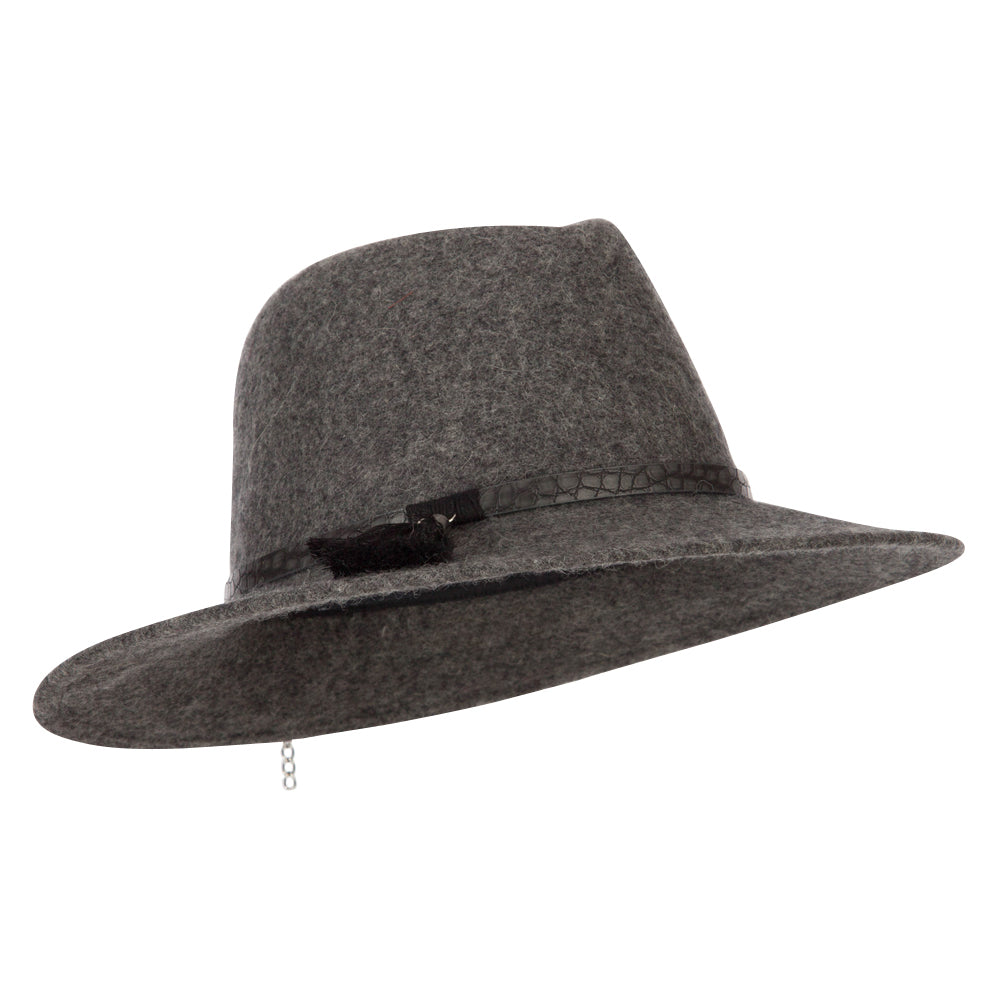 Women's Crocodile Print Trim Band with Tassel and Bead Accent Wool Fedora Hat