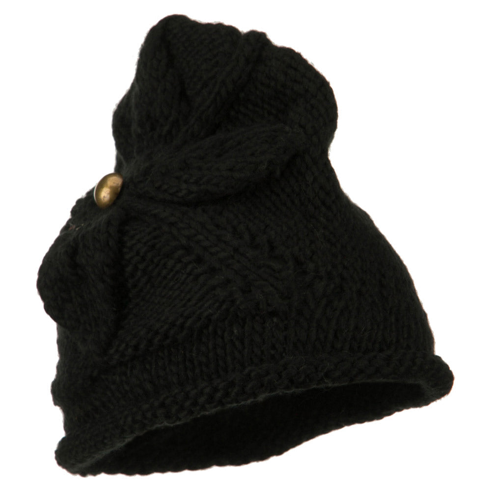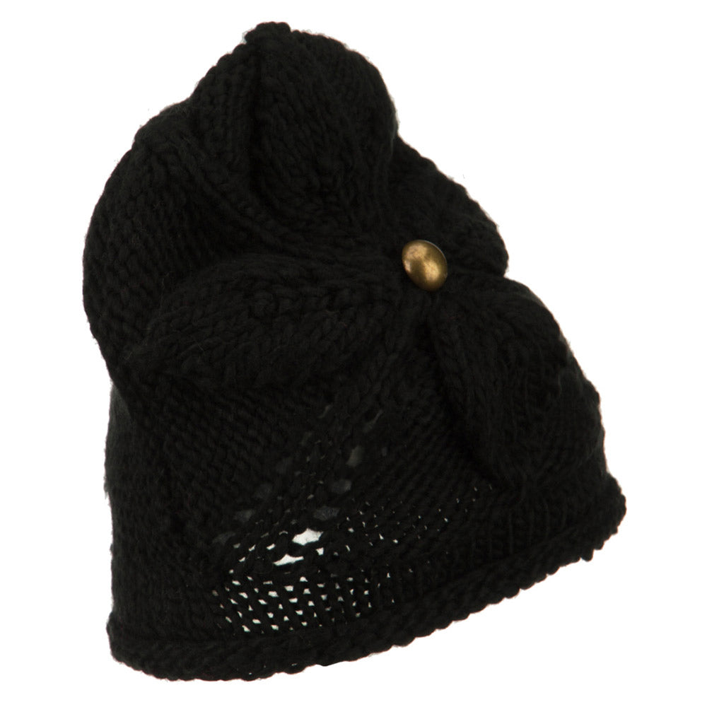 Women's Flower Accent Button Beanie