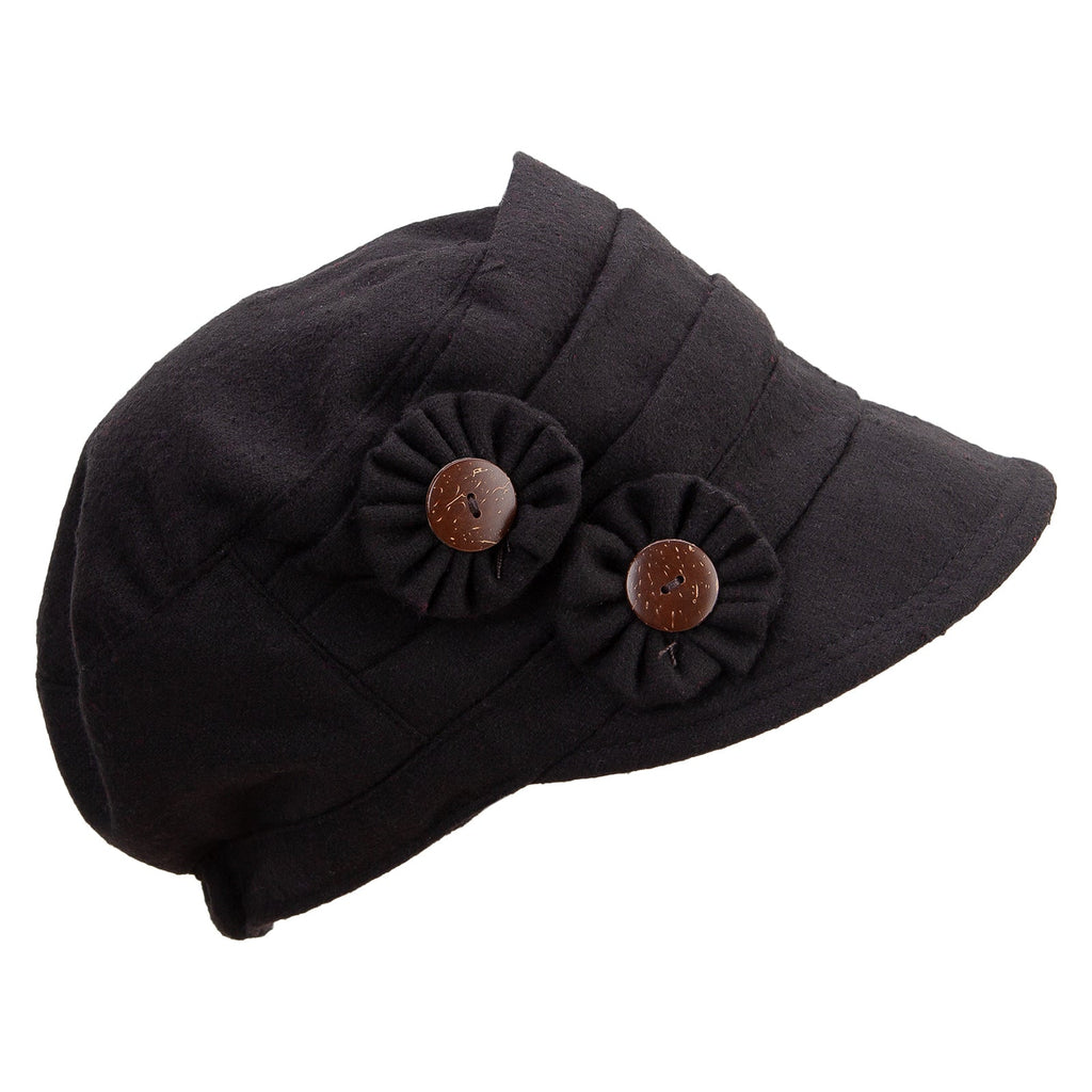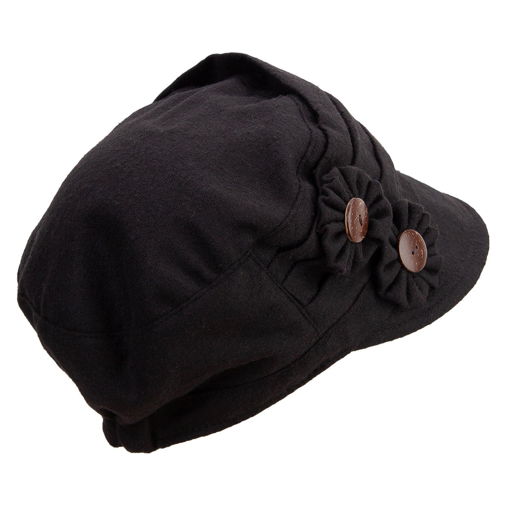 Design Features, Fleece lining, elastic back, dual flower accent with coconut buttons