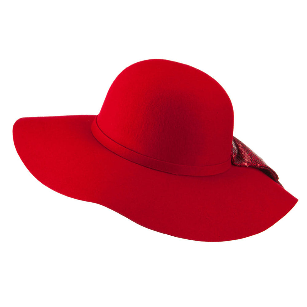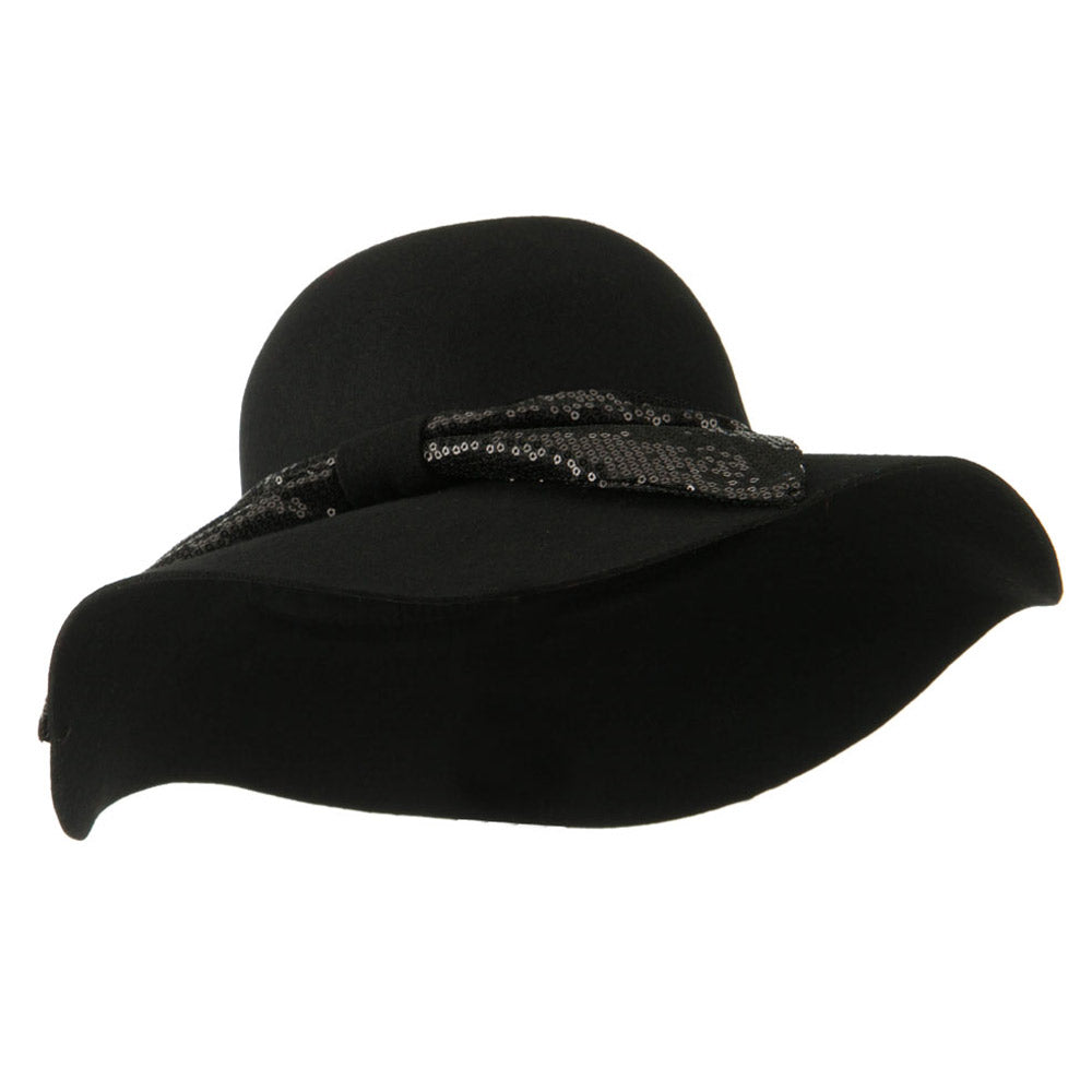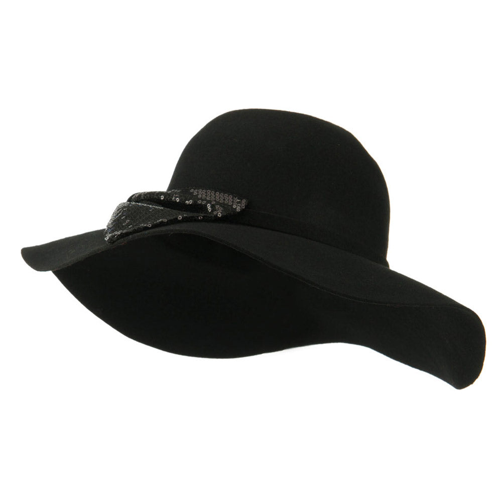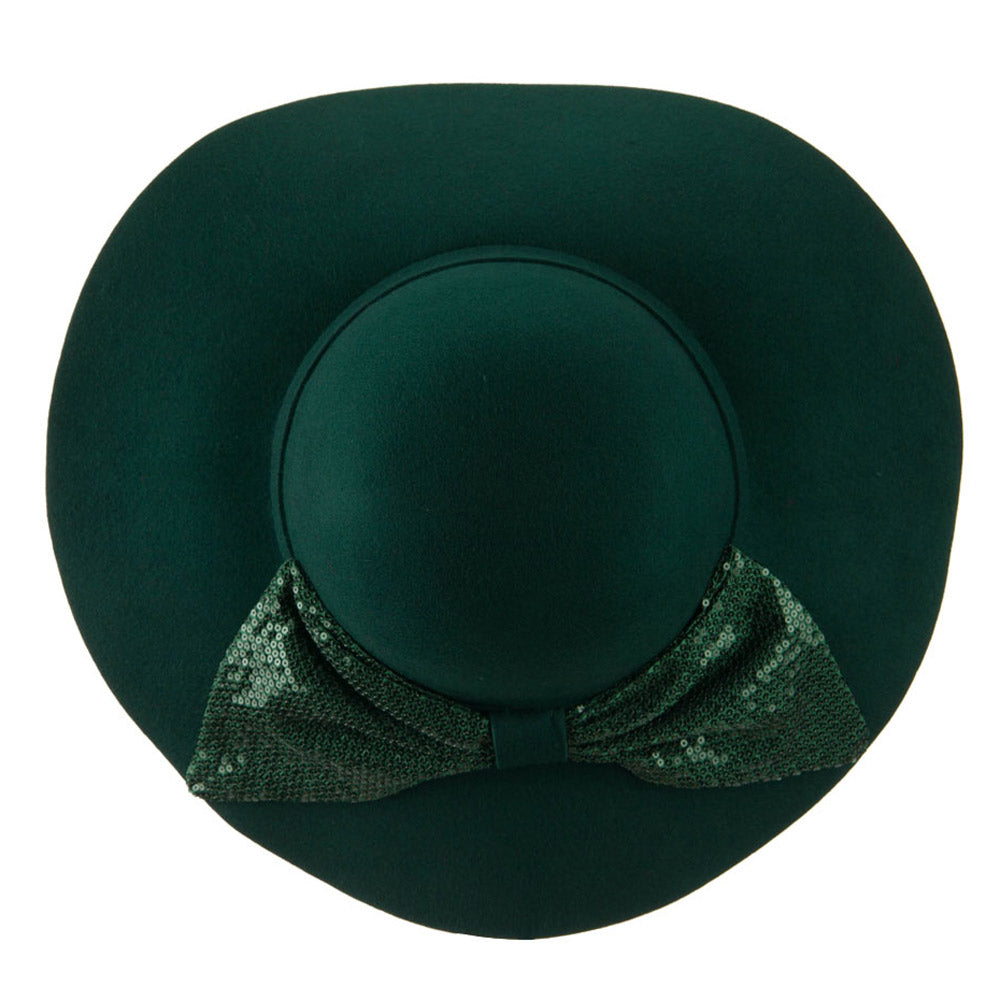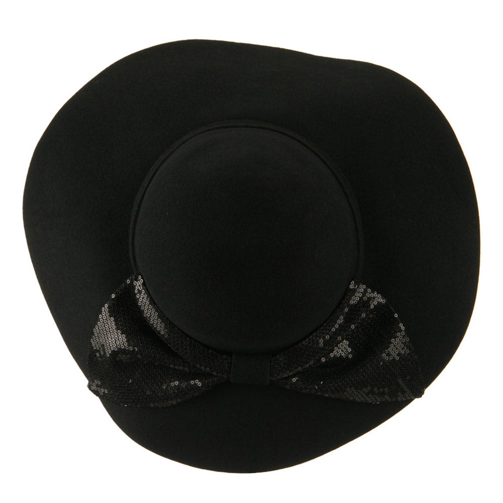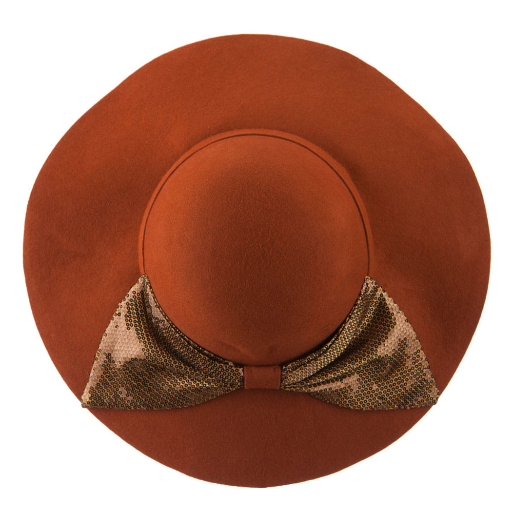 Wool Felt Wide Brim with Big Sequin Bow Hat
