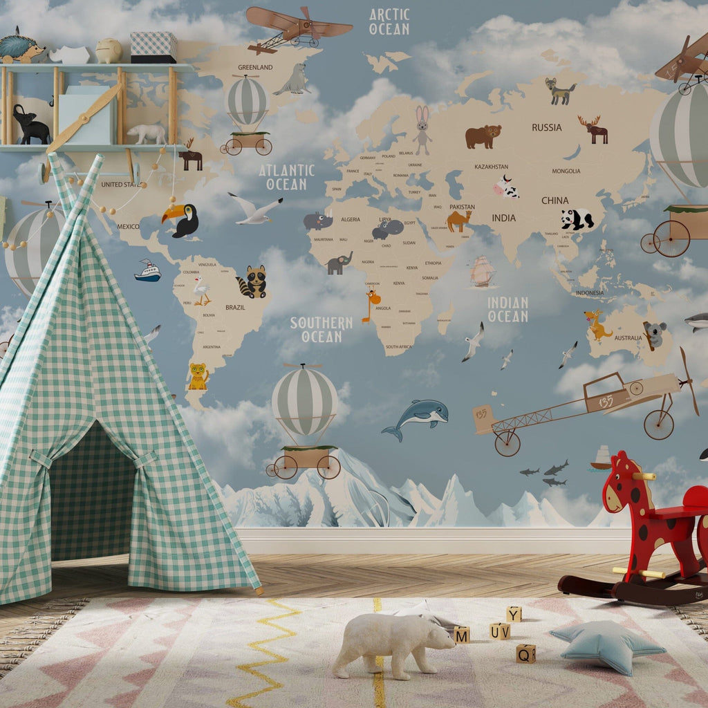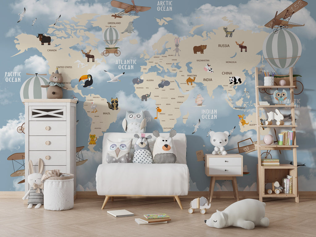 Enhance your nursery with this stunning World Map Mural Wallpaper! Easy to apply and remove, this peel and stick wallpaper offers a perfect blend of style and convenience for your child's room.