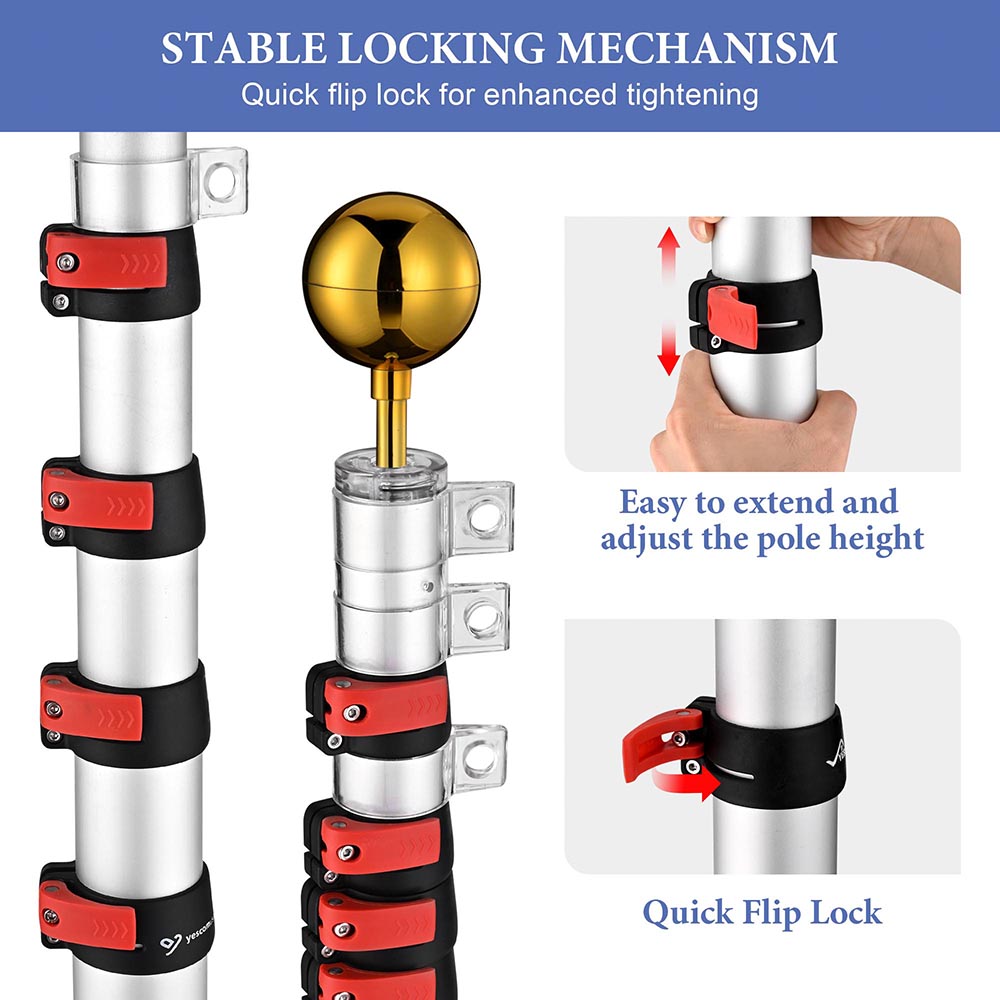 • Solid Construction - Made of thick 16 gauge aluminum, outstanding sturdiness, rust and water resistance, making the flagpole tough enough to be used in outdoor places