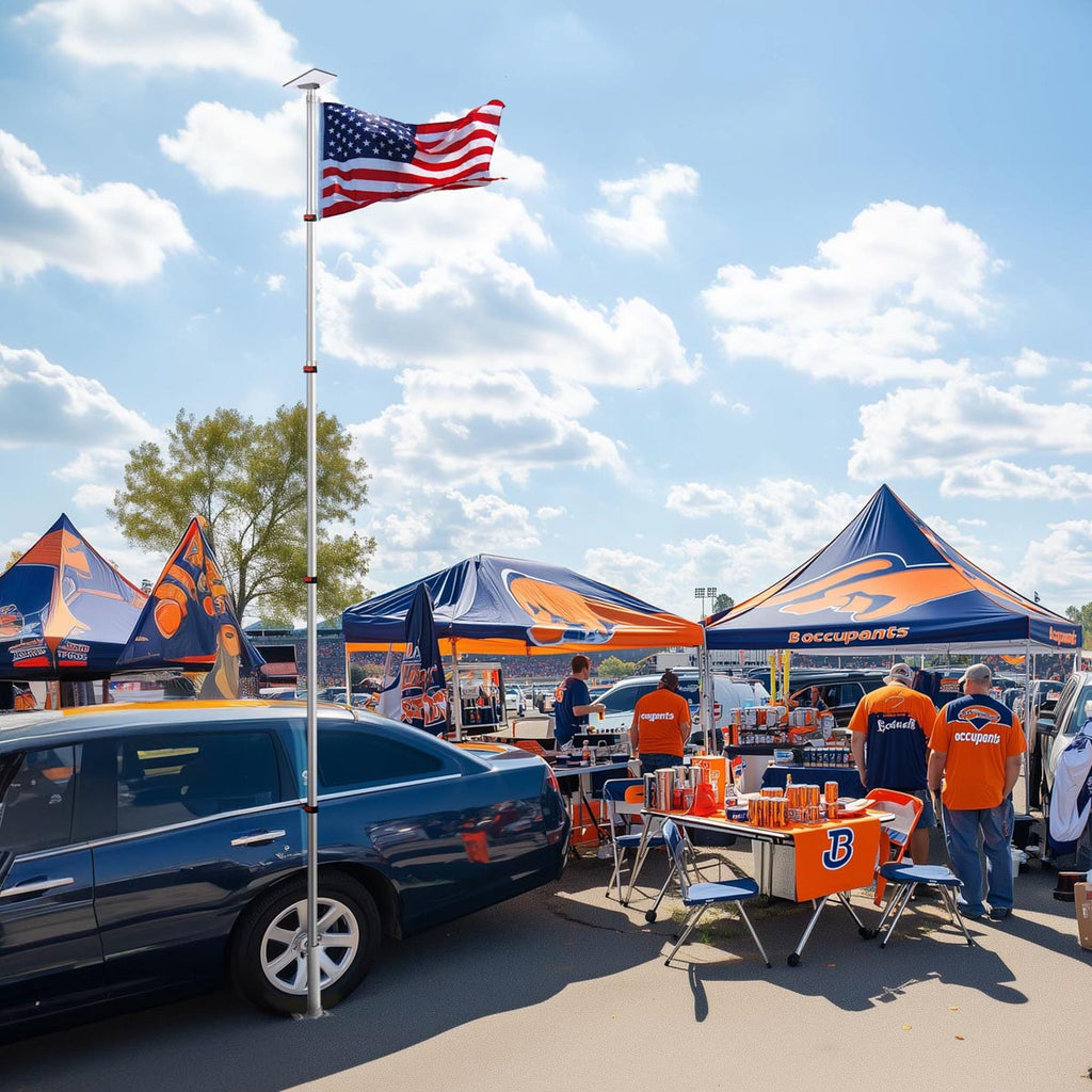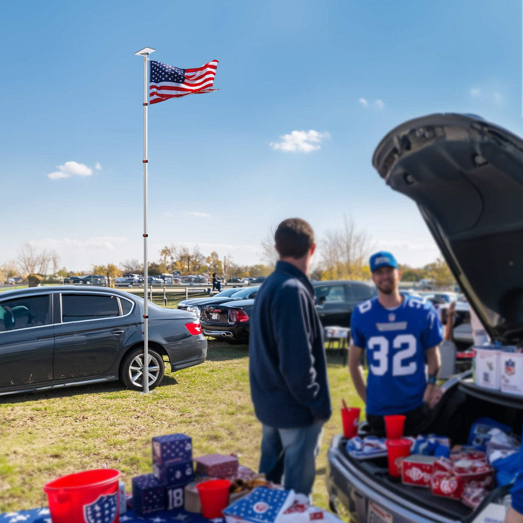 Starlink Mini Flagpole Mounting Kit includes a 14ft telescopic flagpole, a pole mount adapter, a flagpole tire mount and 2 carry bags, providing hassle-free mounting for your Starlink dish on the RVs, campers, or tailgate parties to ensure optimal signal reception.