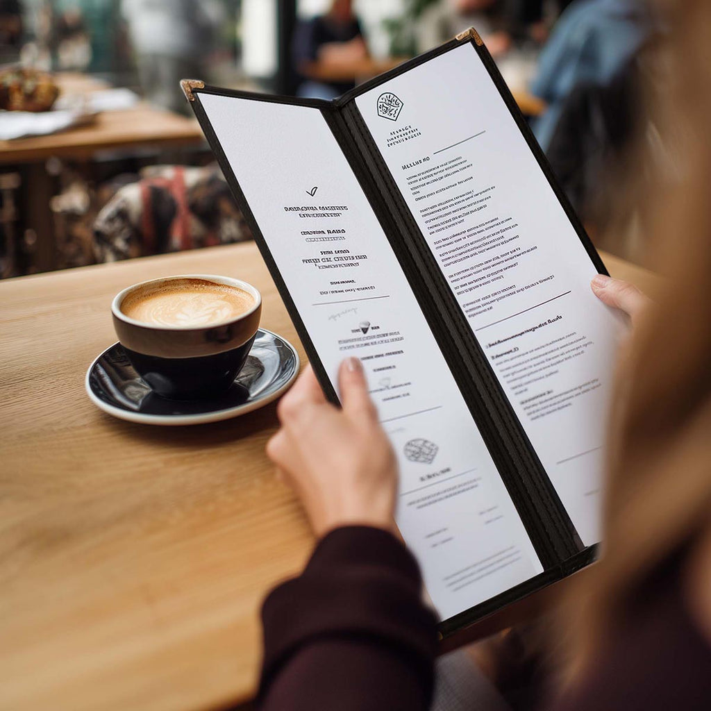 • Perfectly sized for wine, dessert, and specialty drink menus, it ensures a professional look for bistros, cafes, diners, and patisseries
