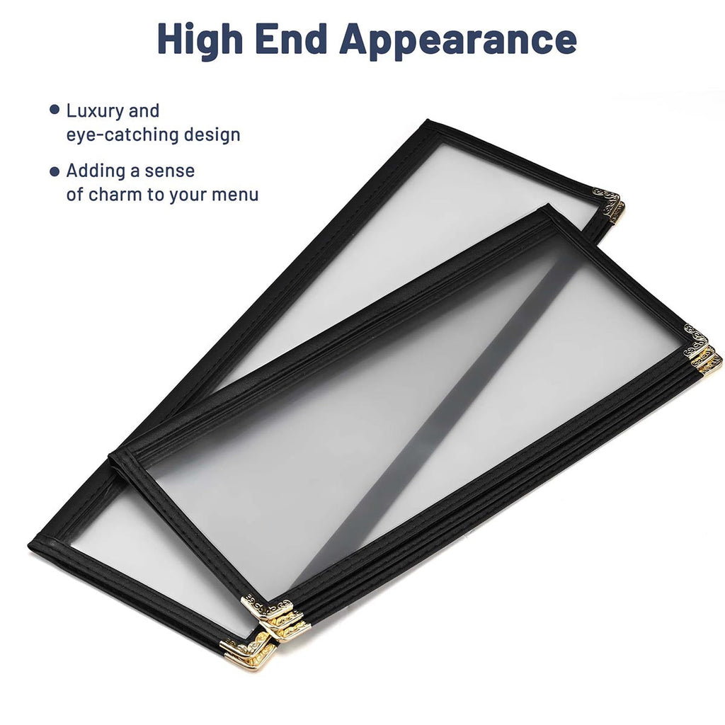Keep your drink menus looking flawless through every rush. Yescom 30 Packs of 4.25"x14" Clear Menu Covers offer unbeatable protection from spills and oil stains. The elegant gold-tone metal corners and double-stitched edges promise lasting durability, while the simple slide-in design makes updates a breeze. A essential upgrade for any bar, cafe, gelaterias, or restaurant that values professionalism and ease.