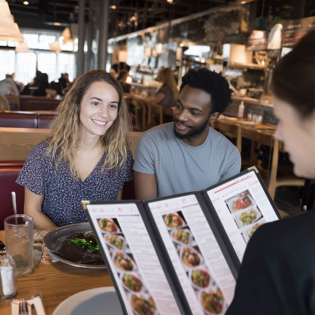 • Clear and wipe-clean PVC shields your menus from spills and stains, ensuring a perfect impression