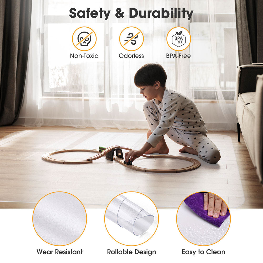 • Rollable & transparent design allows it to match different floors and saves space when stored