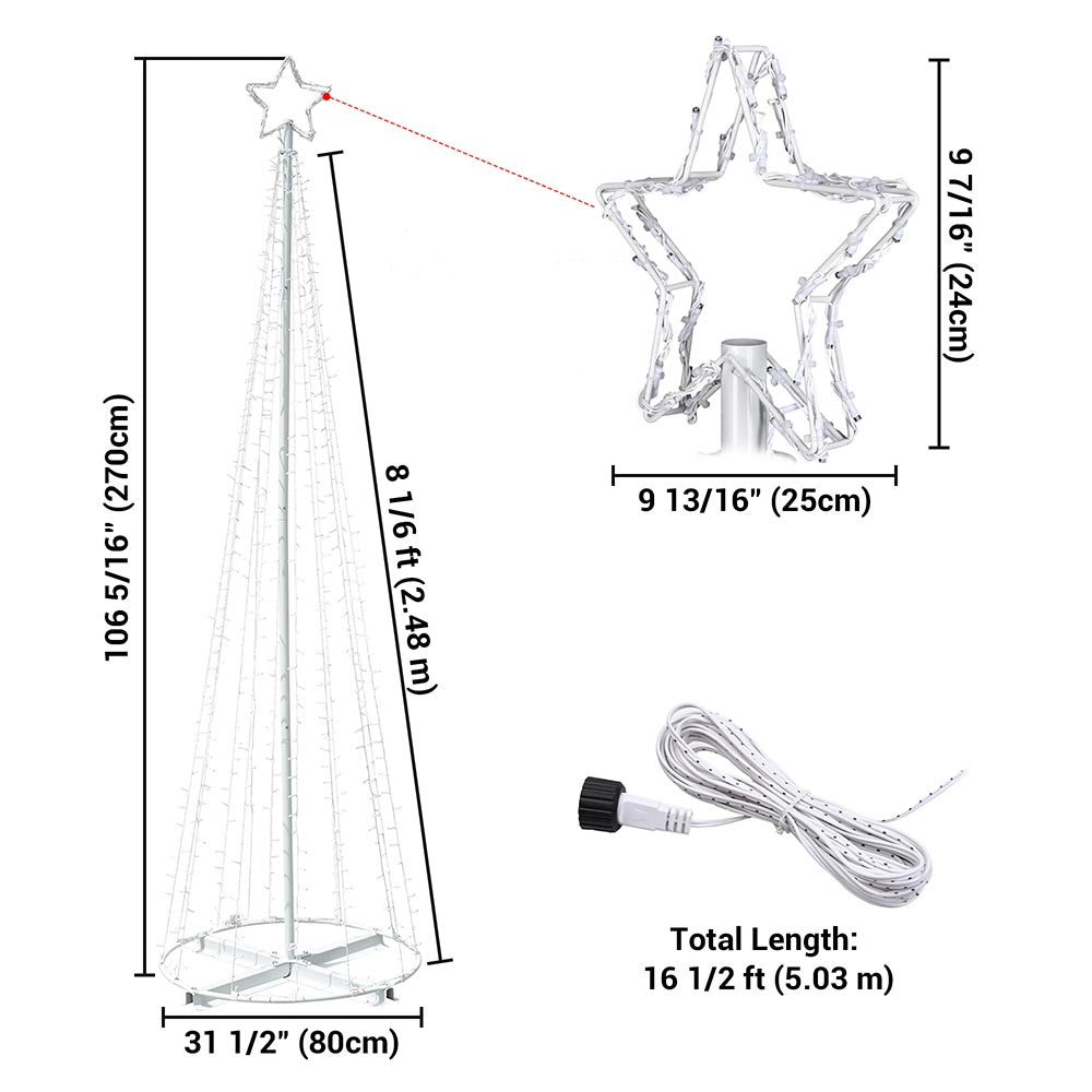 • With 640 pcs LED lights & glowing star, creates a dazzling light show for enhancing the festive atmosphere