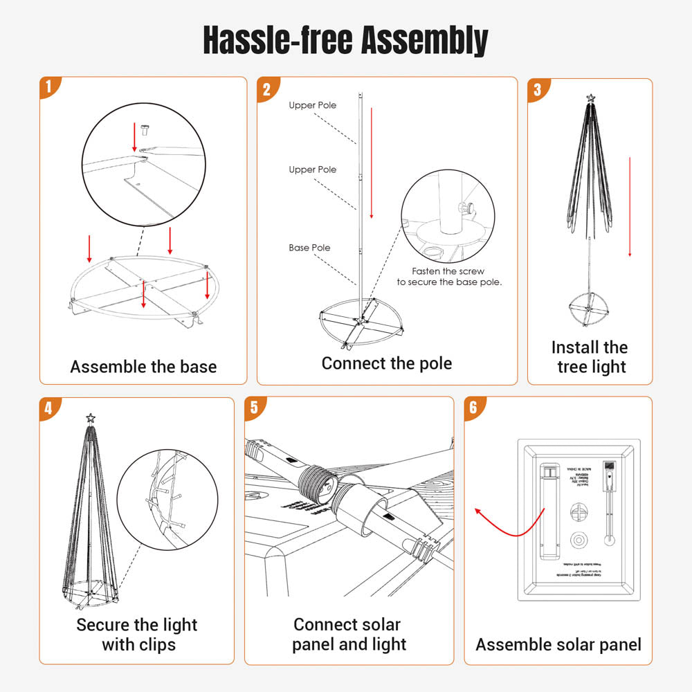 Illuminate your outdoor space with the Christmas Cone Tree Light. Powered by solar energy, it features 640 LEDs and offers 8 preset lighting effects for a festive touch. The upgraded cross base and 4 stakes provide extra stability for any outdoor scenario. Perfect for patios, restaurants, cafes, stores, decks and more.