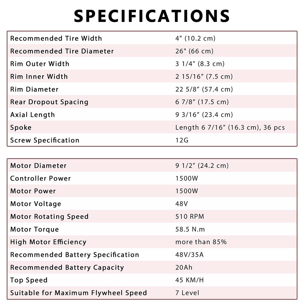 - Rear Hub fit for 6 14/16" rear dropout spacing & 26"x4" tire.