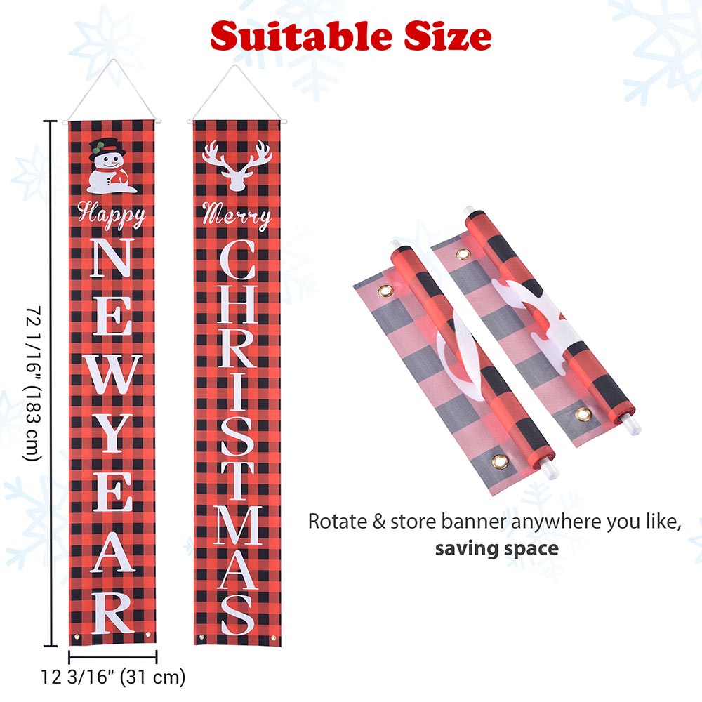 - Fancy Christmas Decoration - 2 pcs Merry Christmas Door Hanging feature red black buffalo plaid and snowman and reindeer patterns, a well-designed banner decoration for your front porch or entryway, also attractive welcome sign for Christmas and New Year party