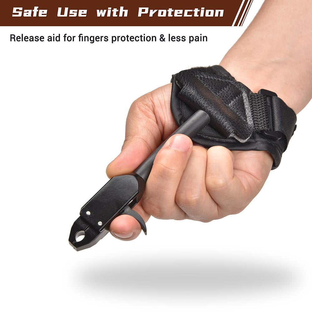 - Safe Use with Protection - Comes with release aid that works with a D-loop for fingers protection and reducing the pain caused by long time hunting or practice, with a strap fastening securely to the wrist