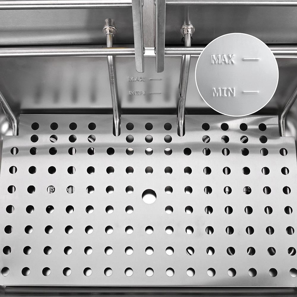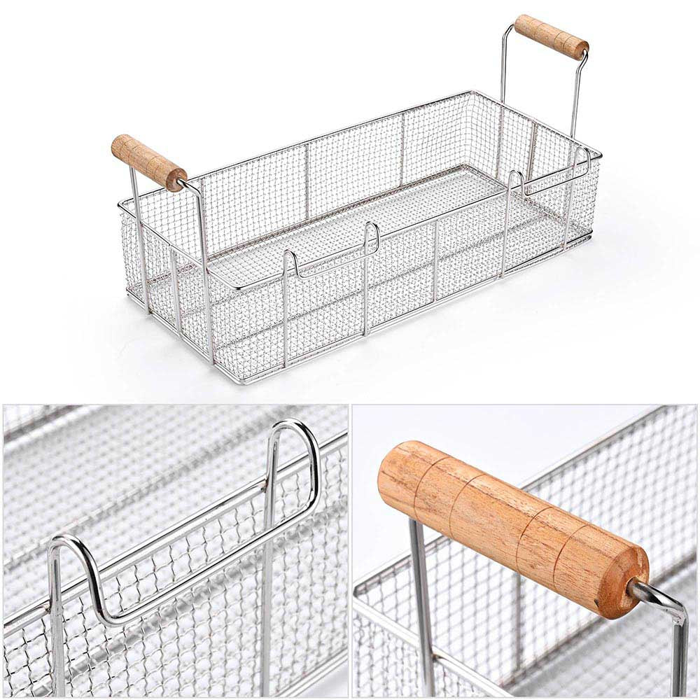 - Fryer basket with handle on each side prevents scalding of your hands and brings safe and easy operation
