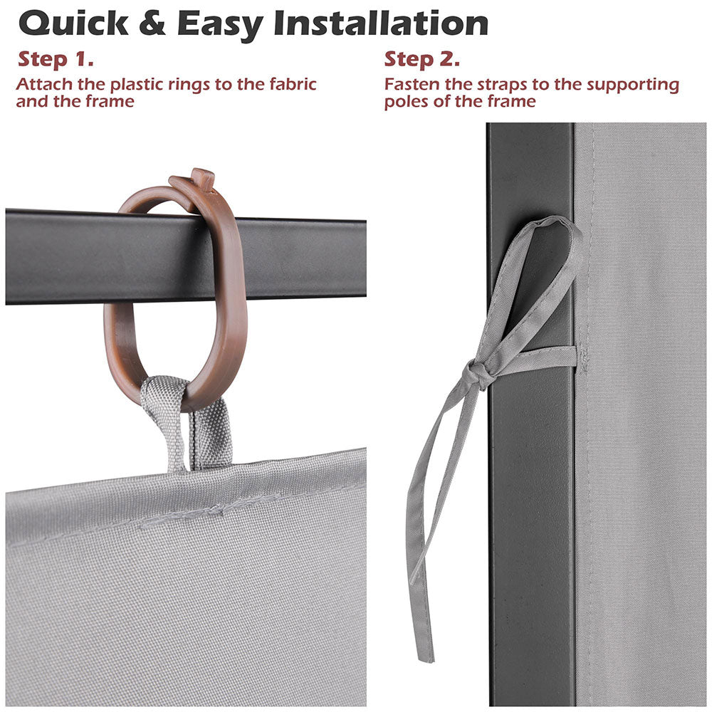 - Easy Installation - Easily attach the plastic rings to the frame and hang the netting on frame and fasten it on the canopy legs with straps